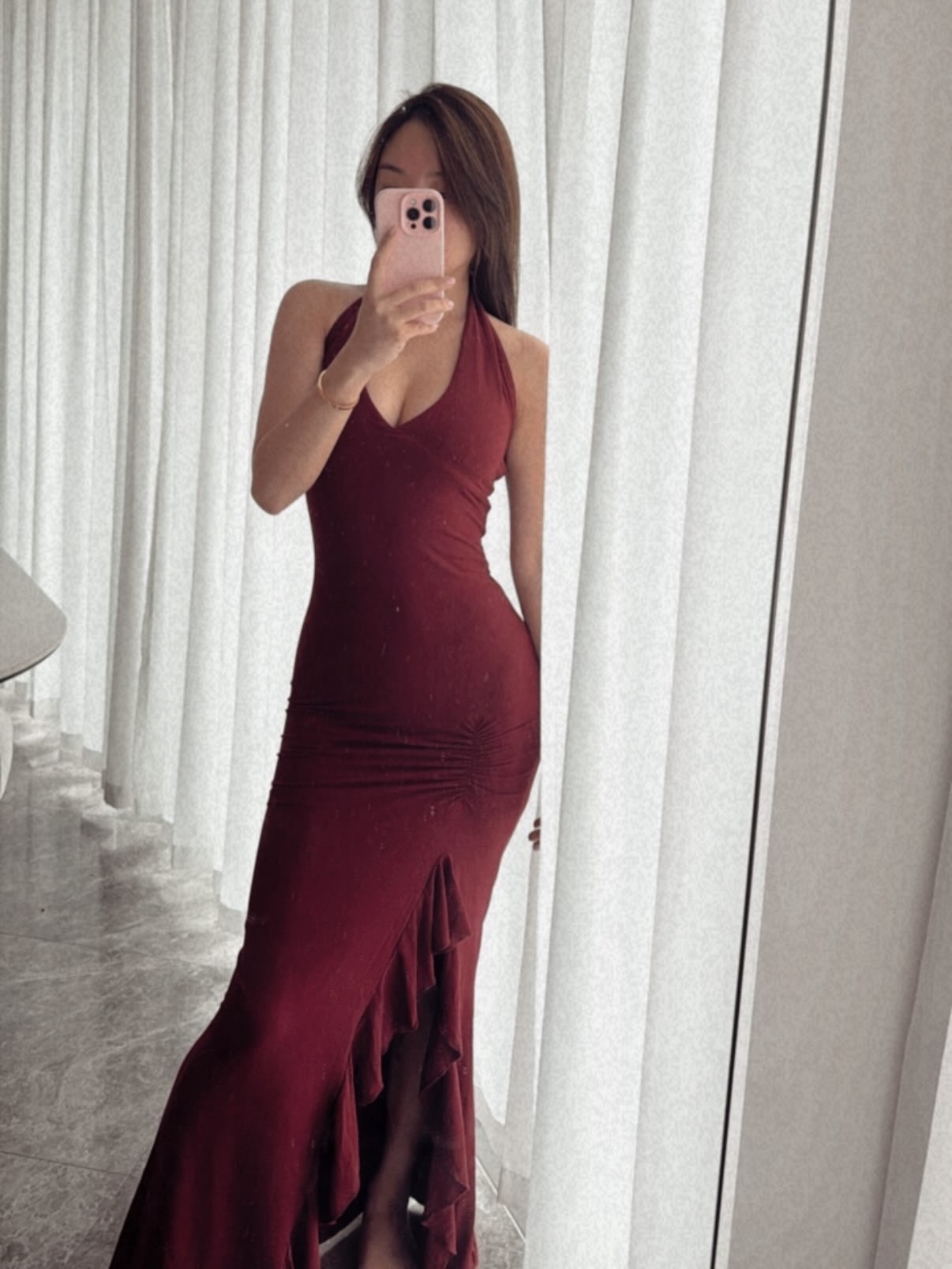 側邊開衩的裙擺不只修飾腿型,還能拉長比例👍🏻
