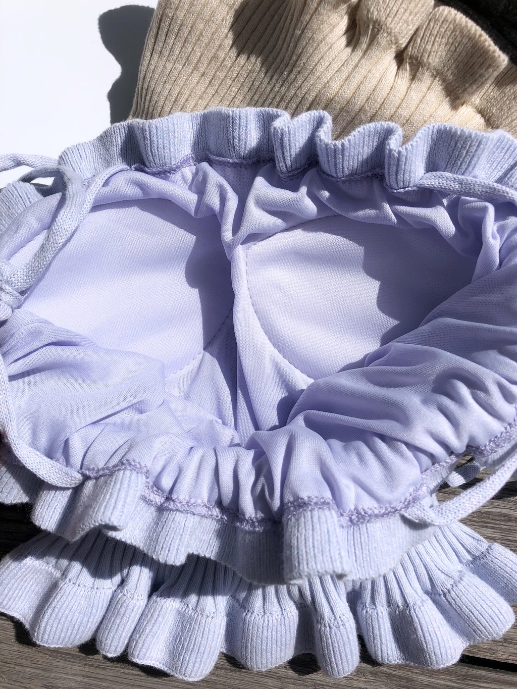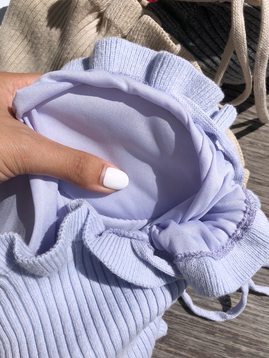 這件就有加了厚墊在內裡,可以直接穿!!!木耳邊很小清新小可愛❤️也多了一點慵懶感☺️