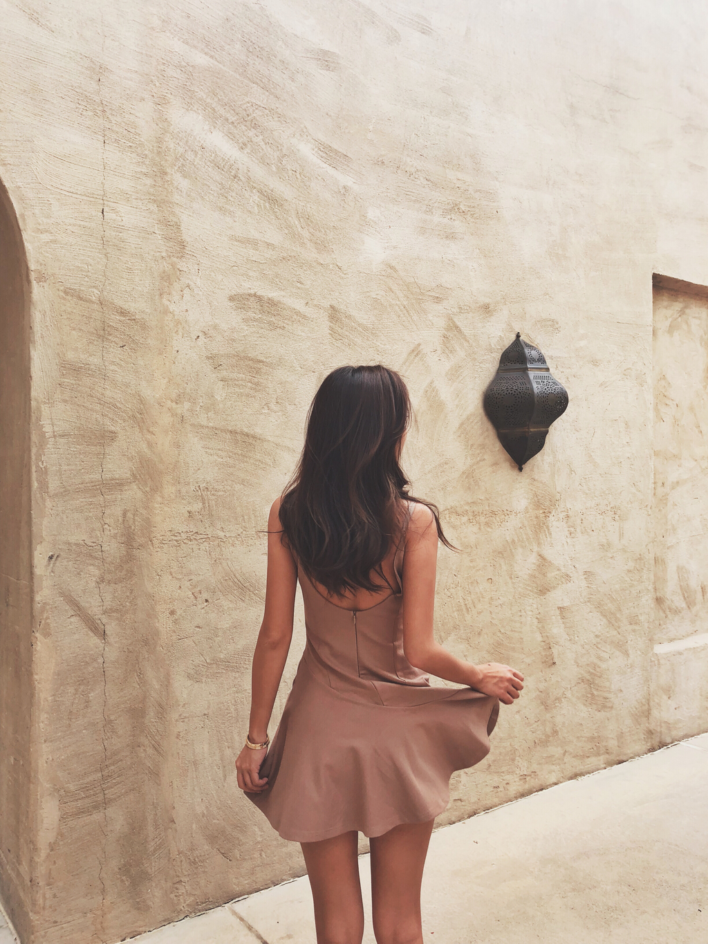 Camel 駝色控! 細肩帶不規則小短裙洋裝