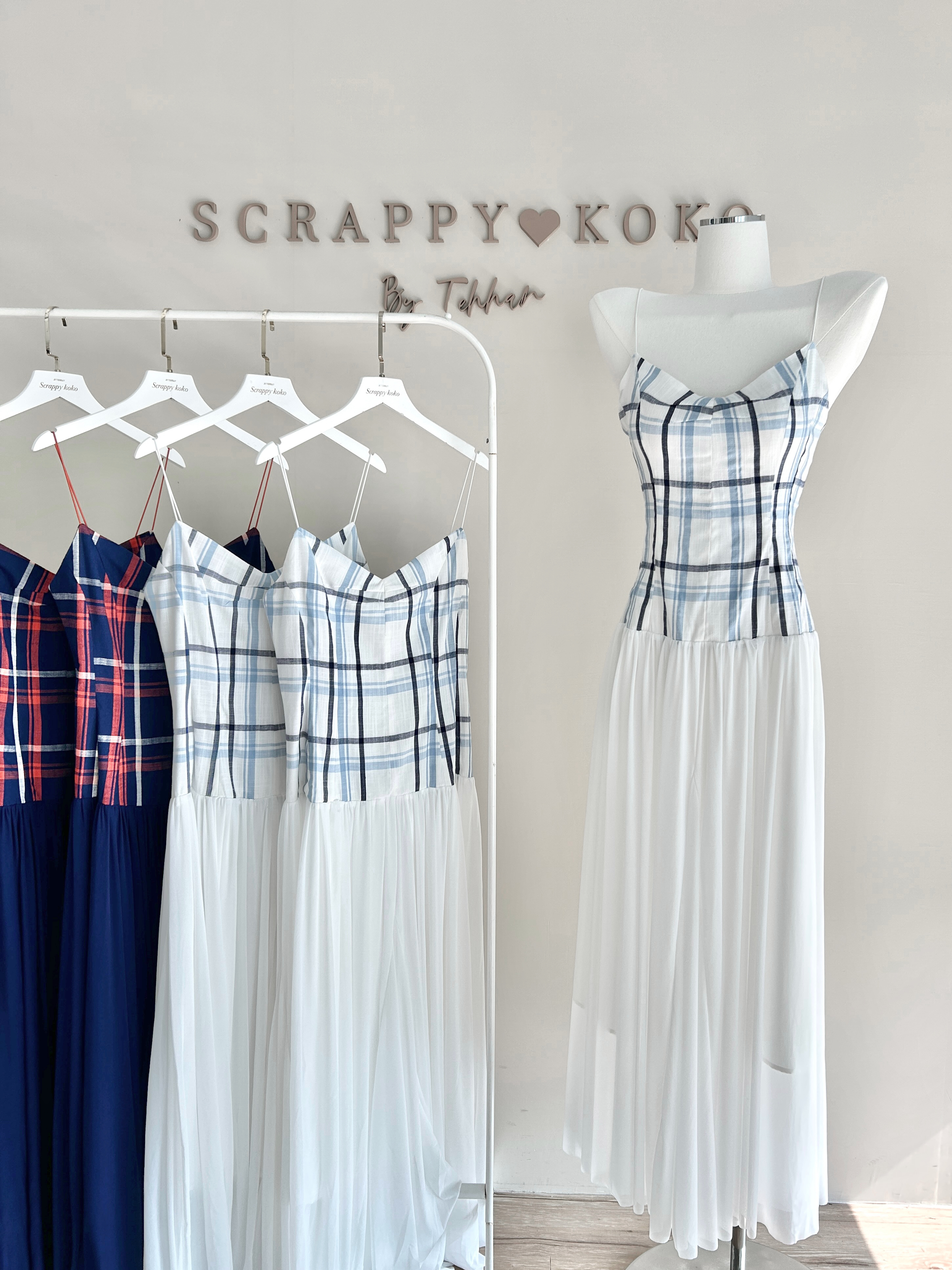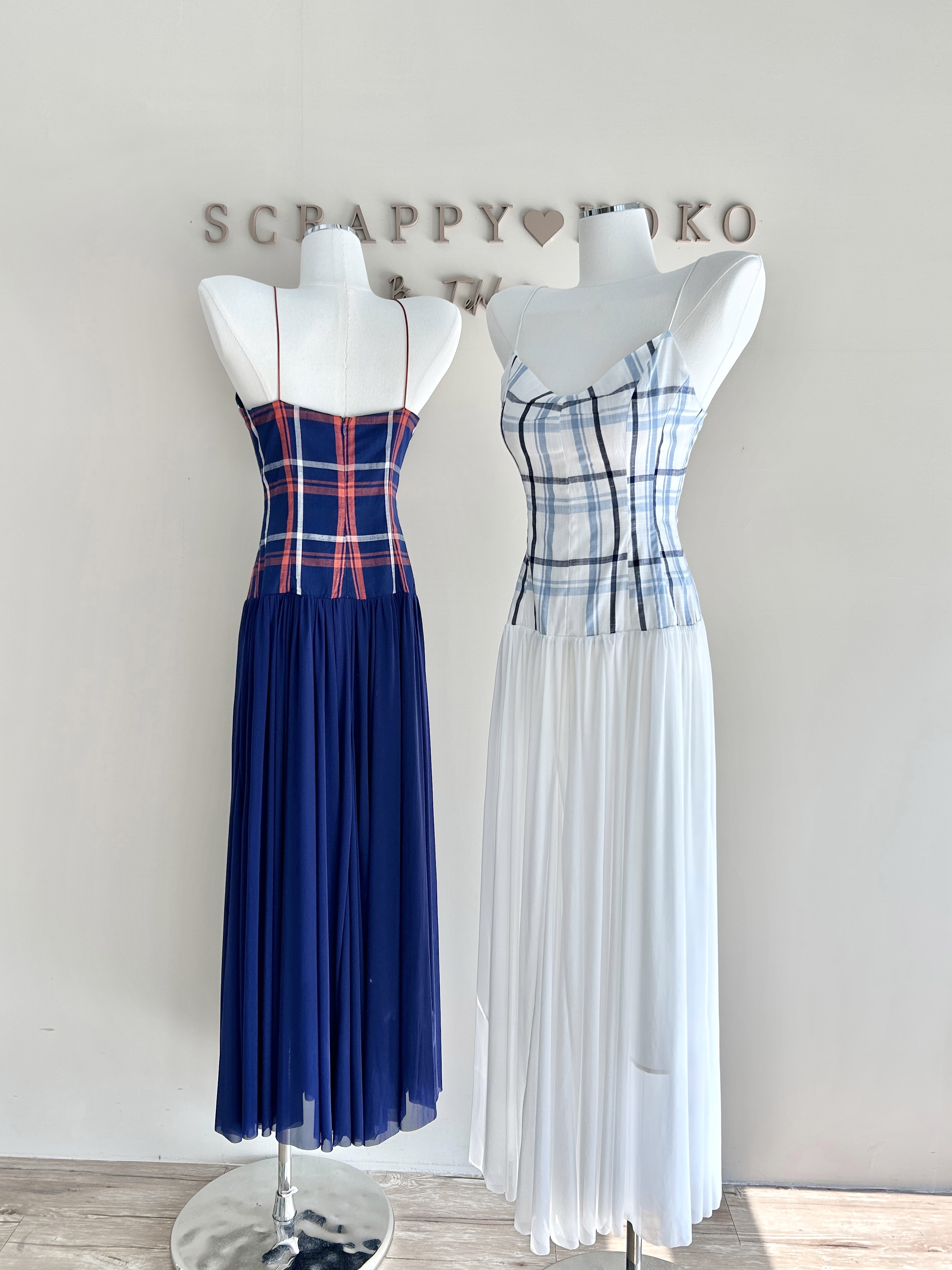 Dreamy 格紋情書 細肩帶柔紗格紋洋裝