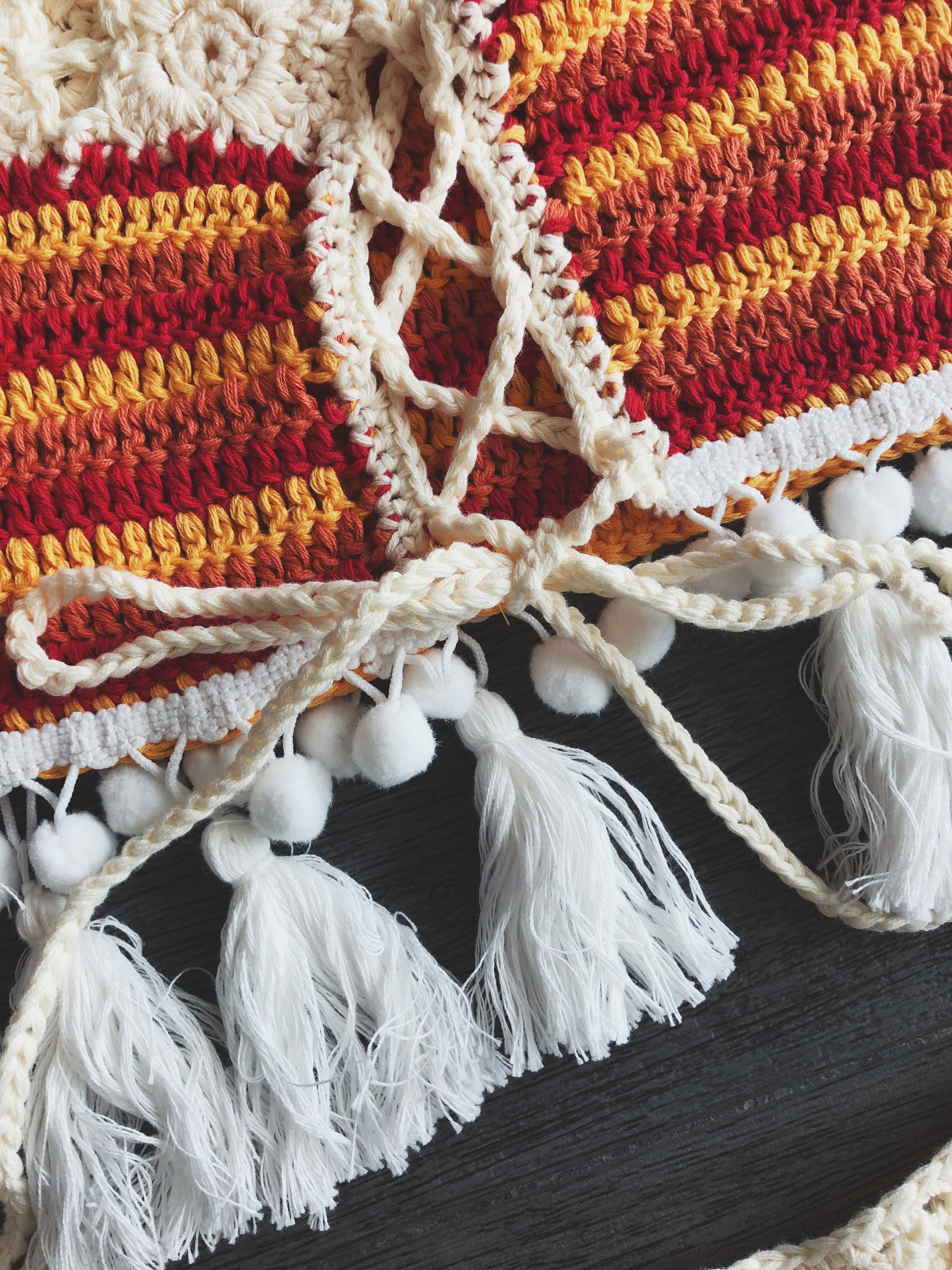 網狀設計有質感,加上波西米亞風的流蘇和小毛球點綴超級美!針織布料有彈性不親膚很好穿唷😘
