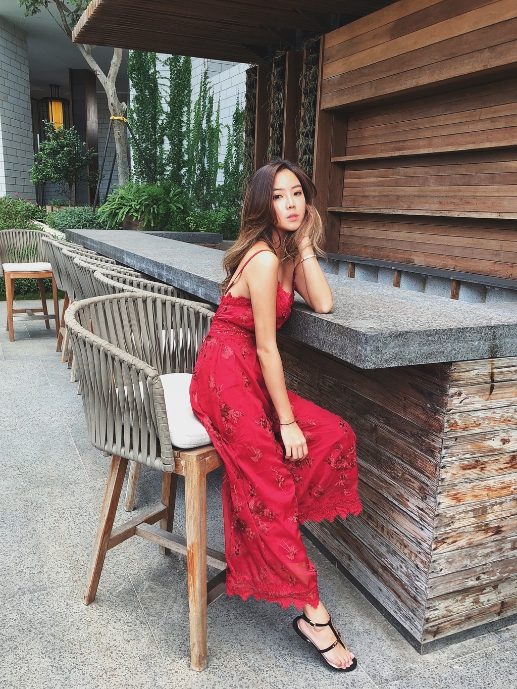 Fire rose 火焰 刺繡玫瑰細肩帶連身長褲