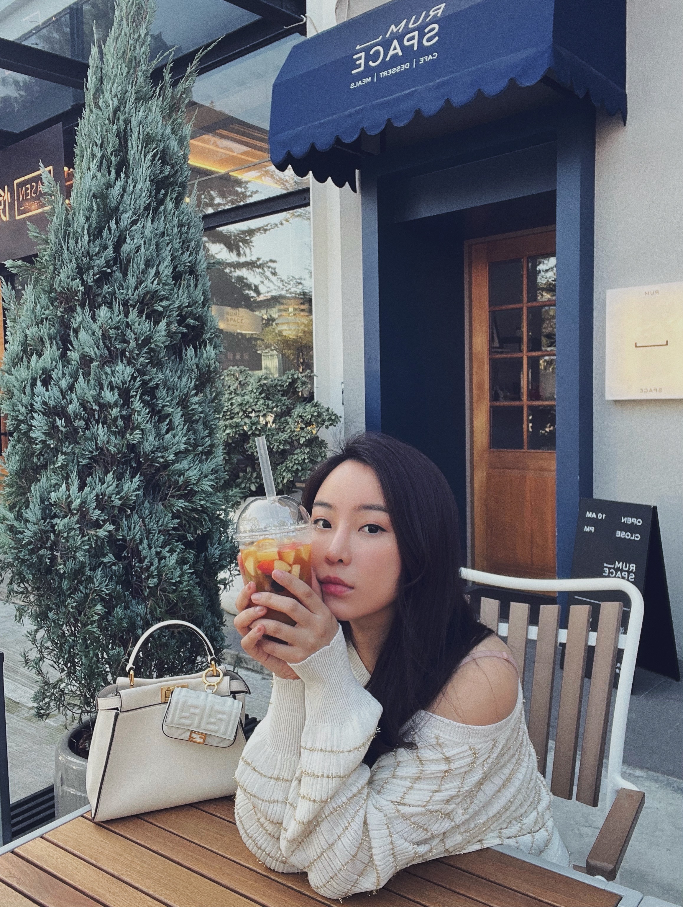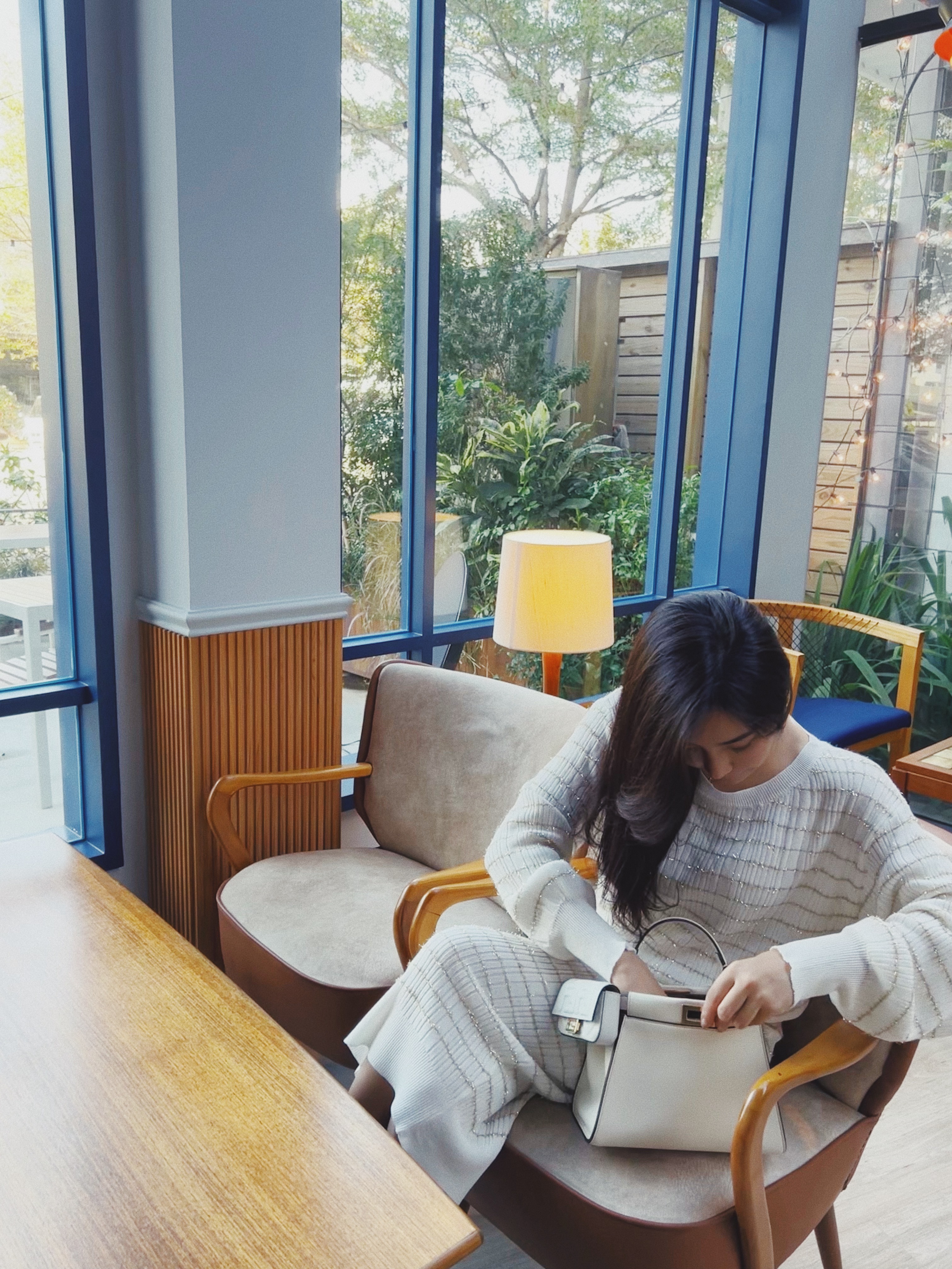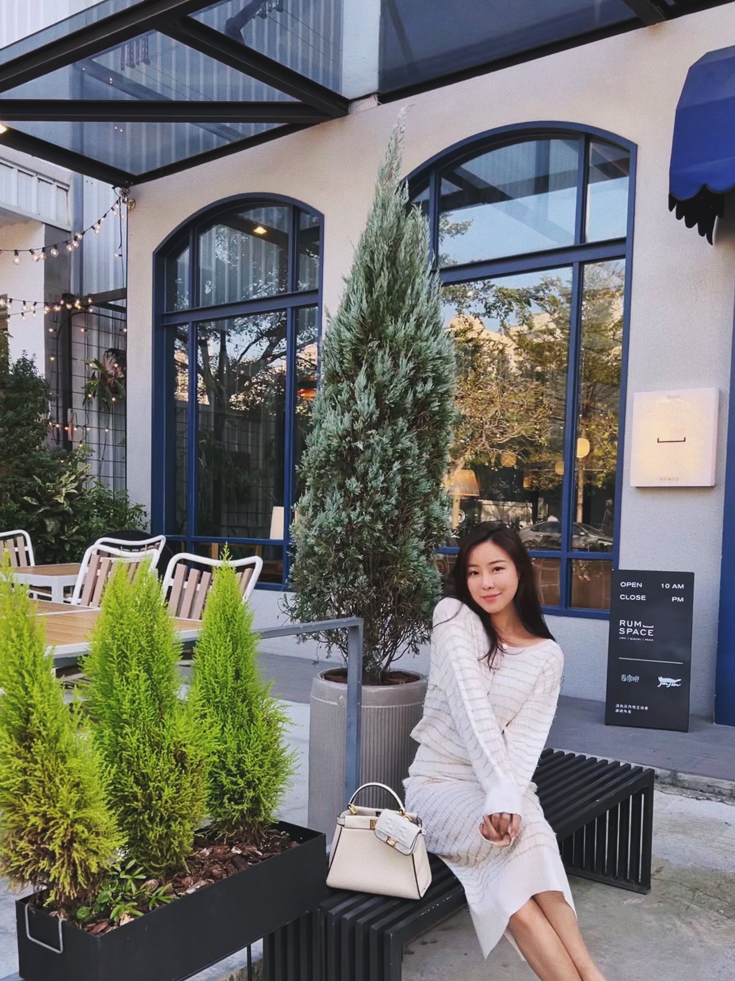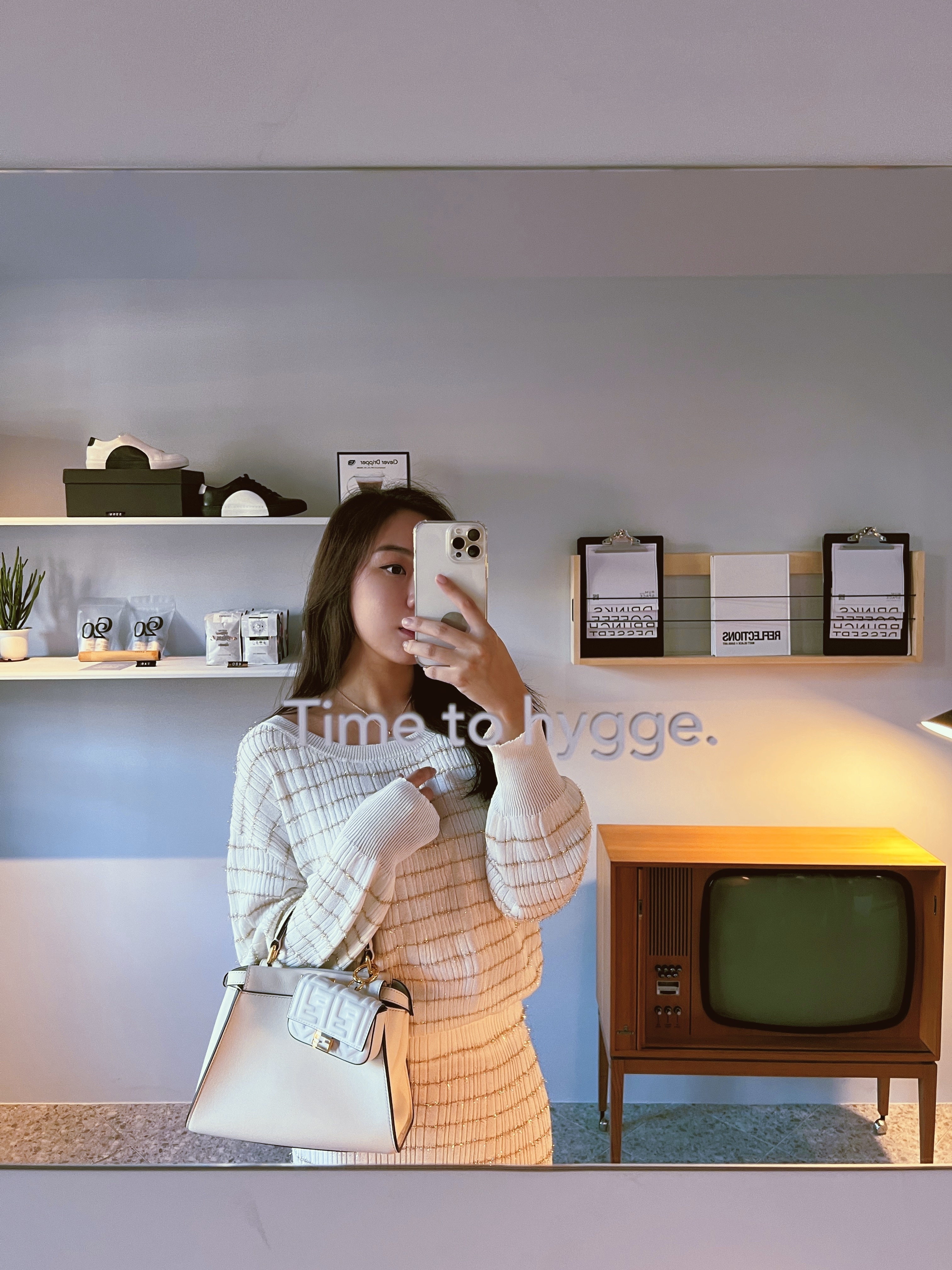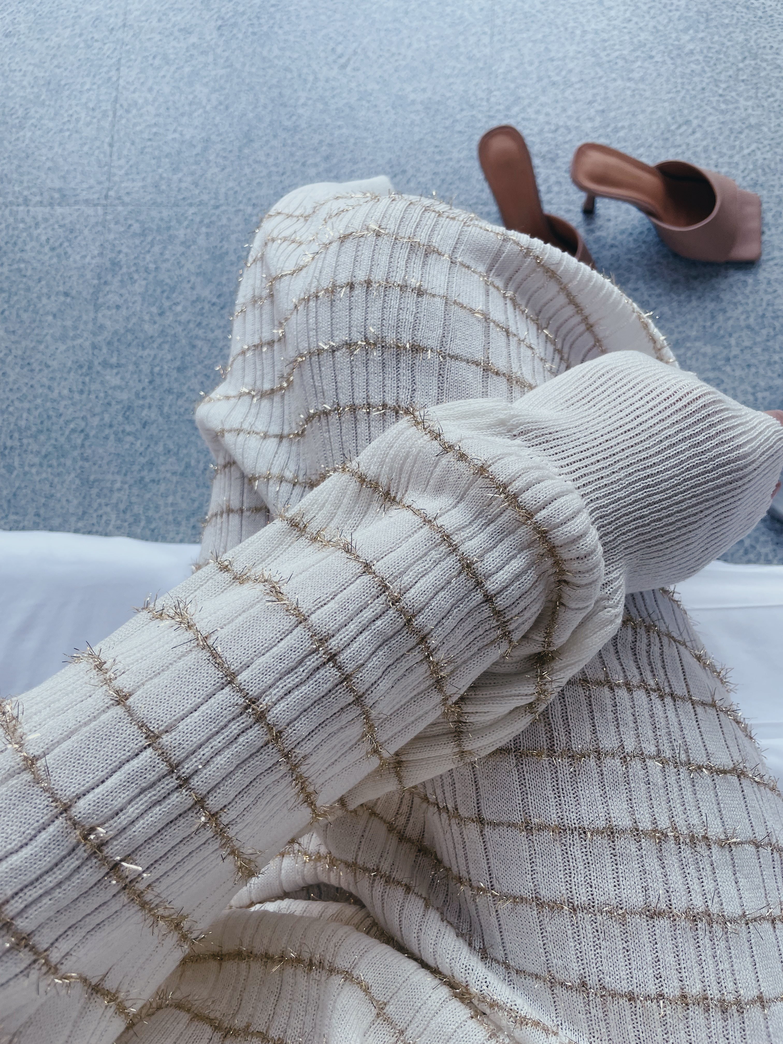 白色針織配上金色條紋點綴好優雅