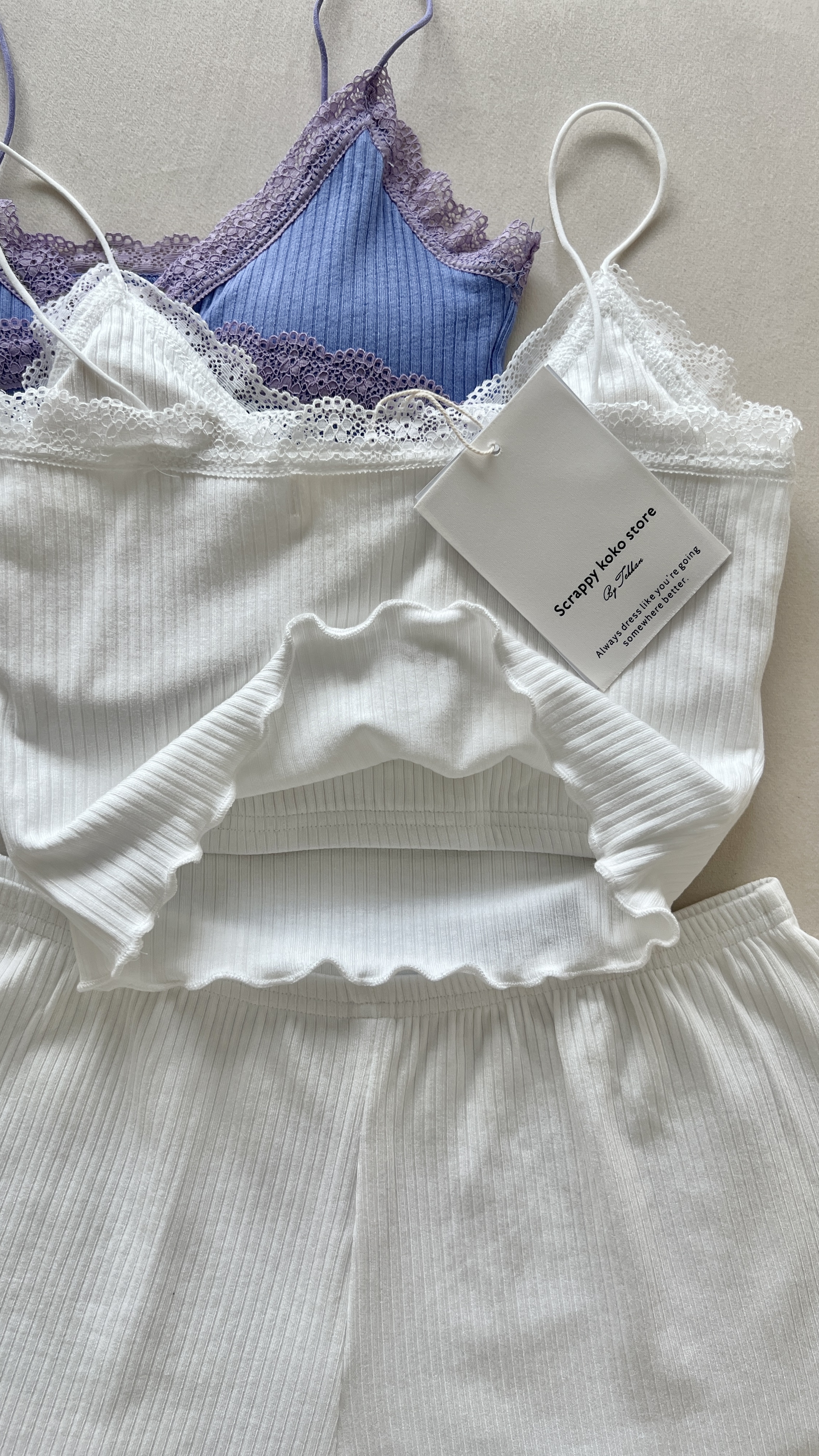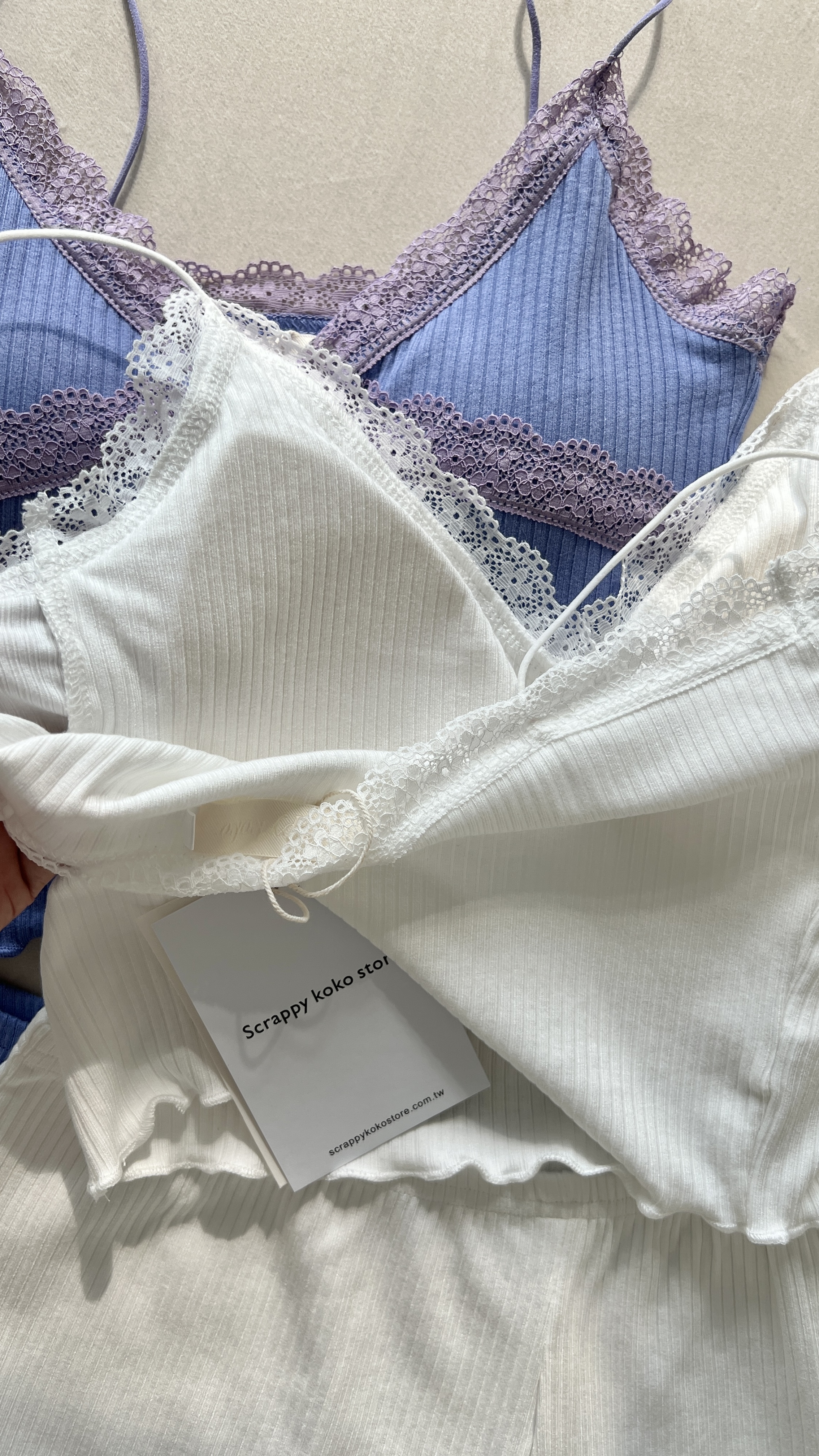 拼接蕾絲加上木耳捲邊