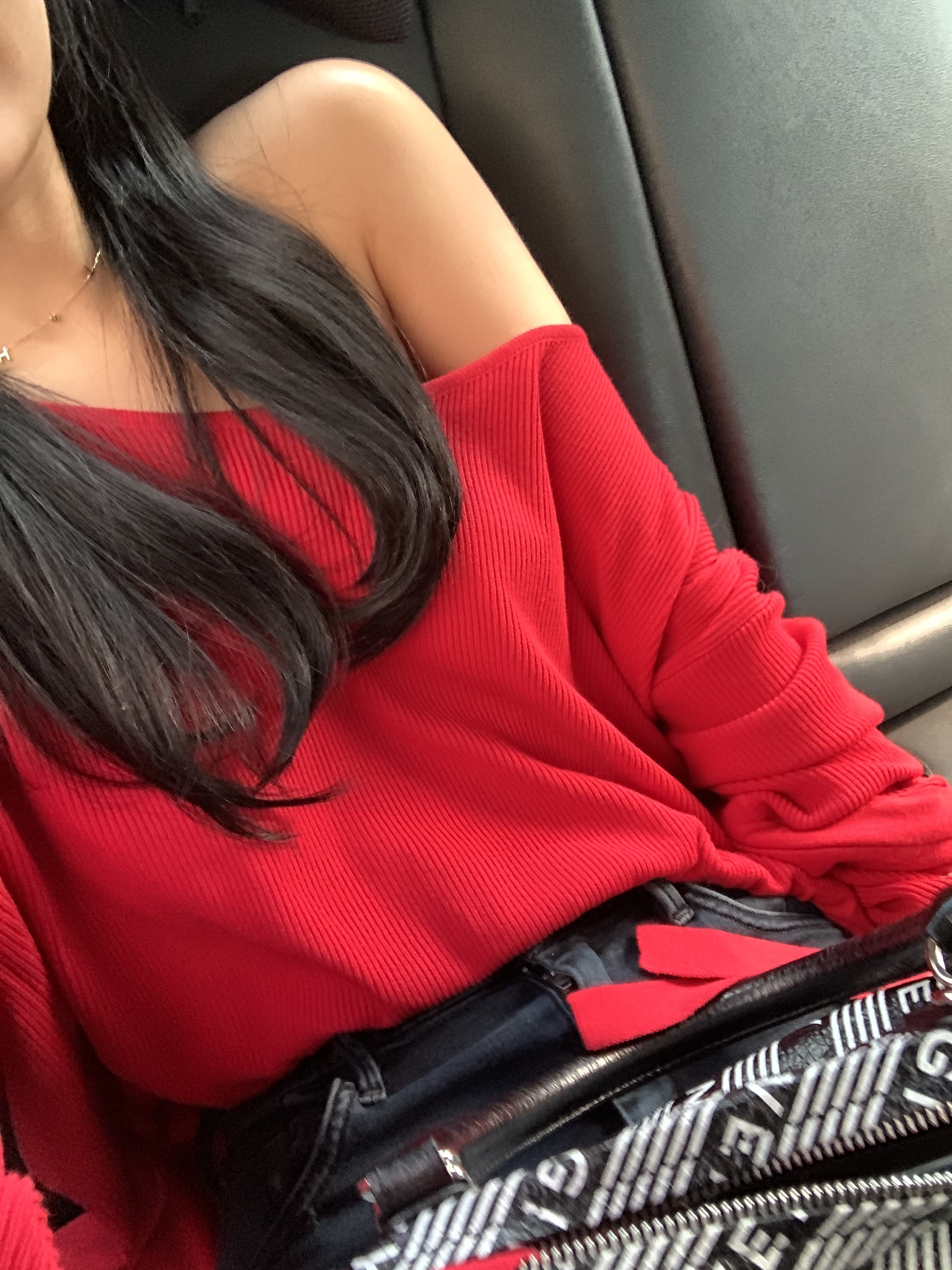 布料摸起來非常紮實,領口有彈性,可以正常穿也可以拉成斜肩~