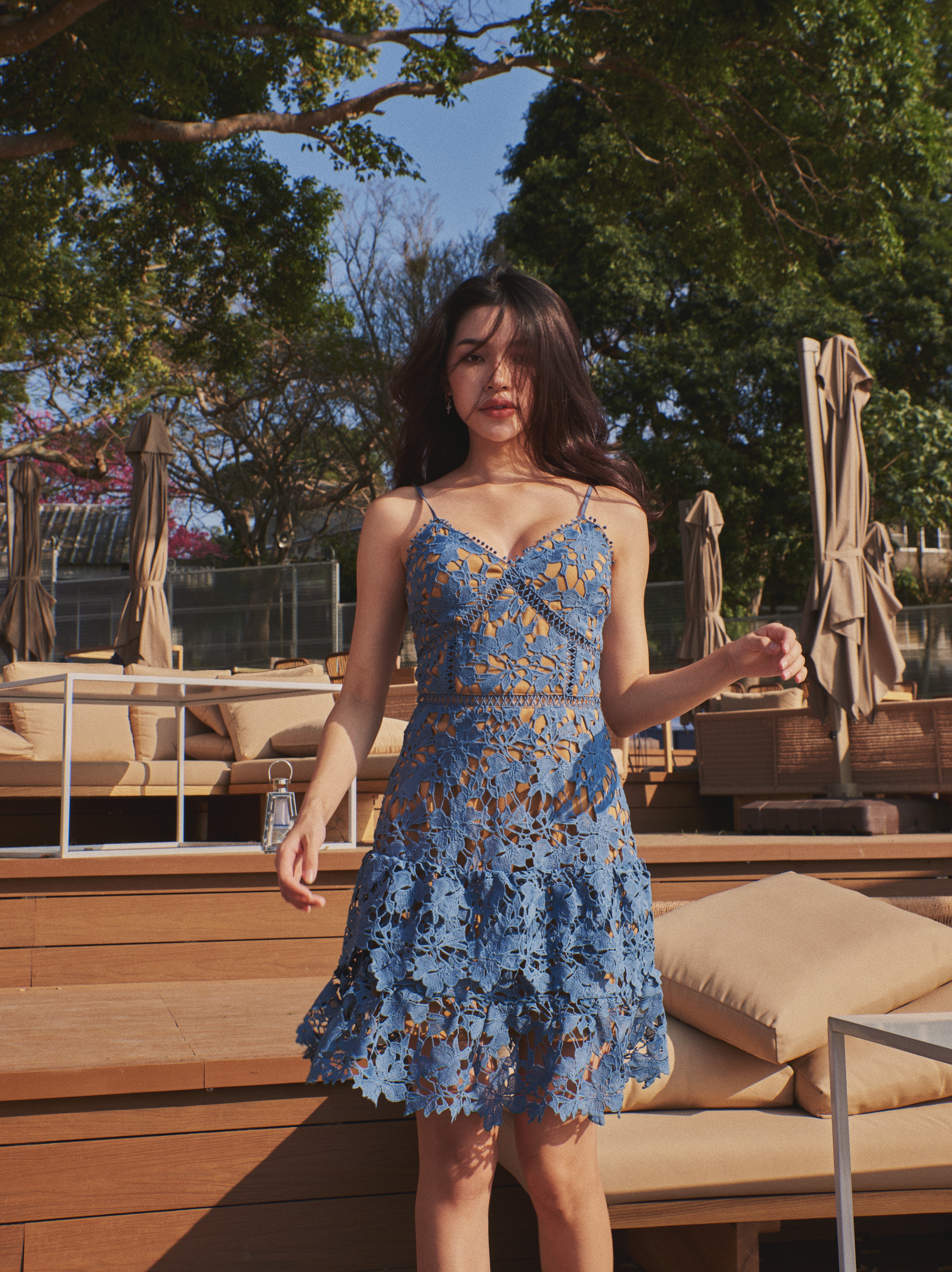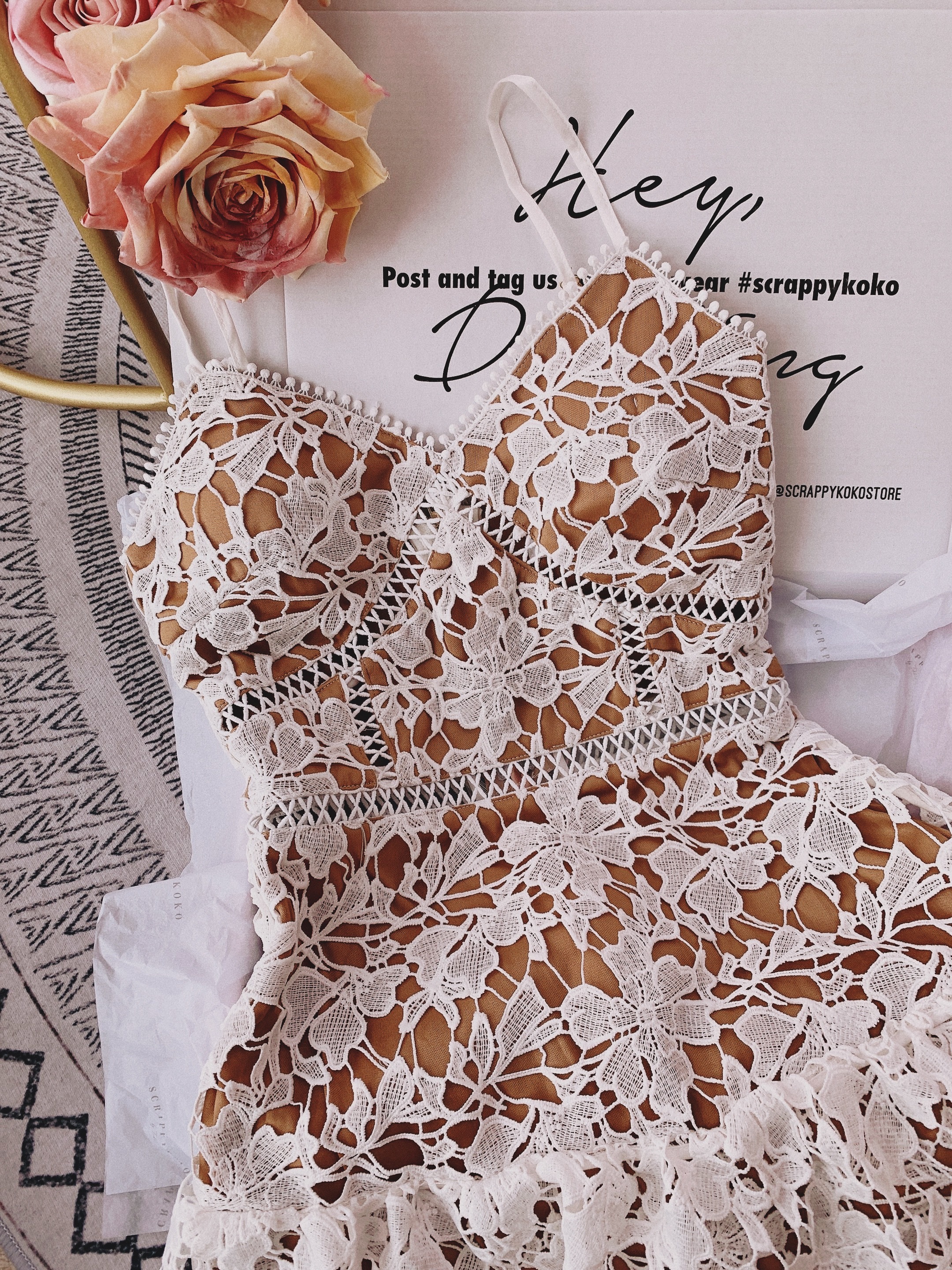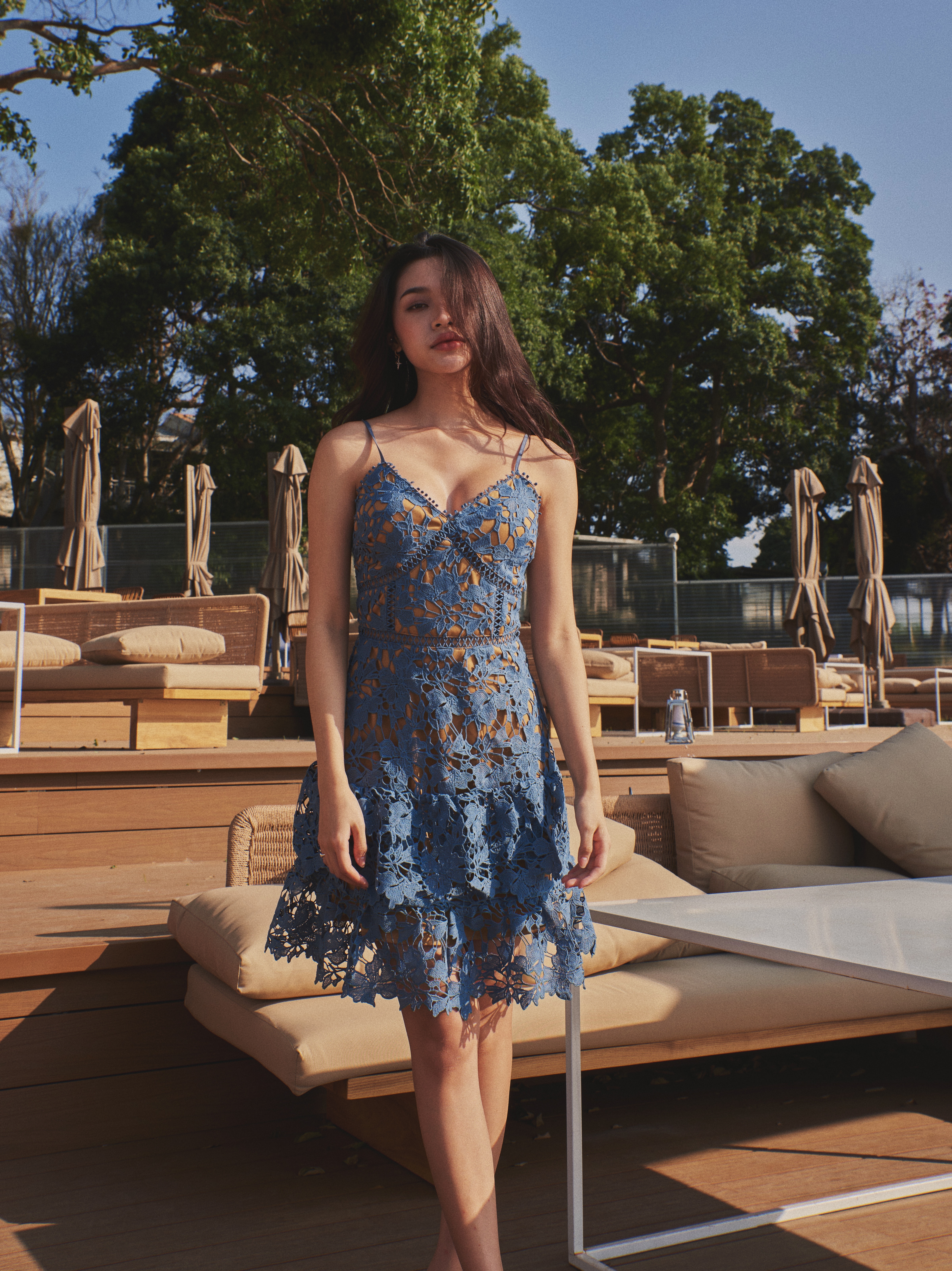 Like it 細肩帶雕花蕾絲小蛋糕裙