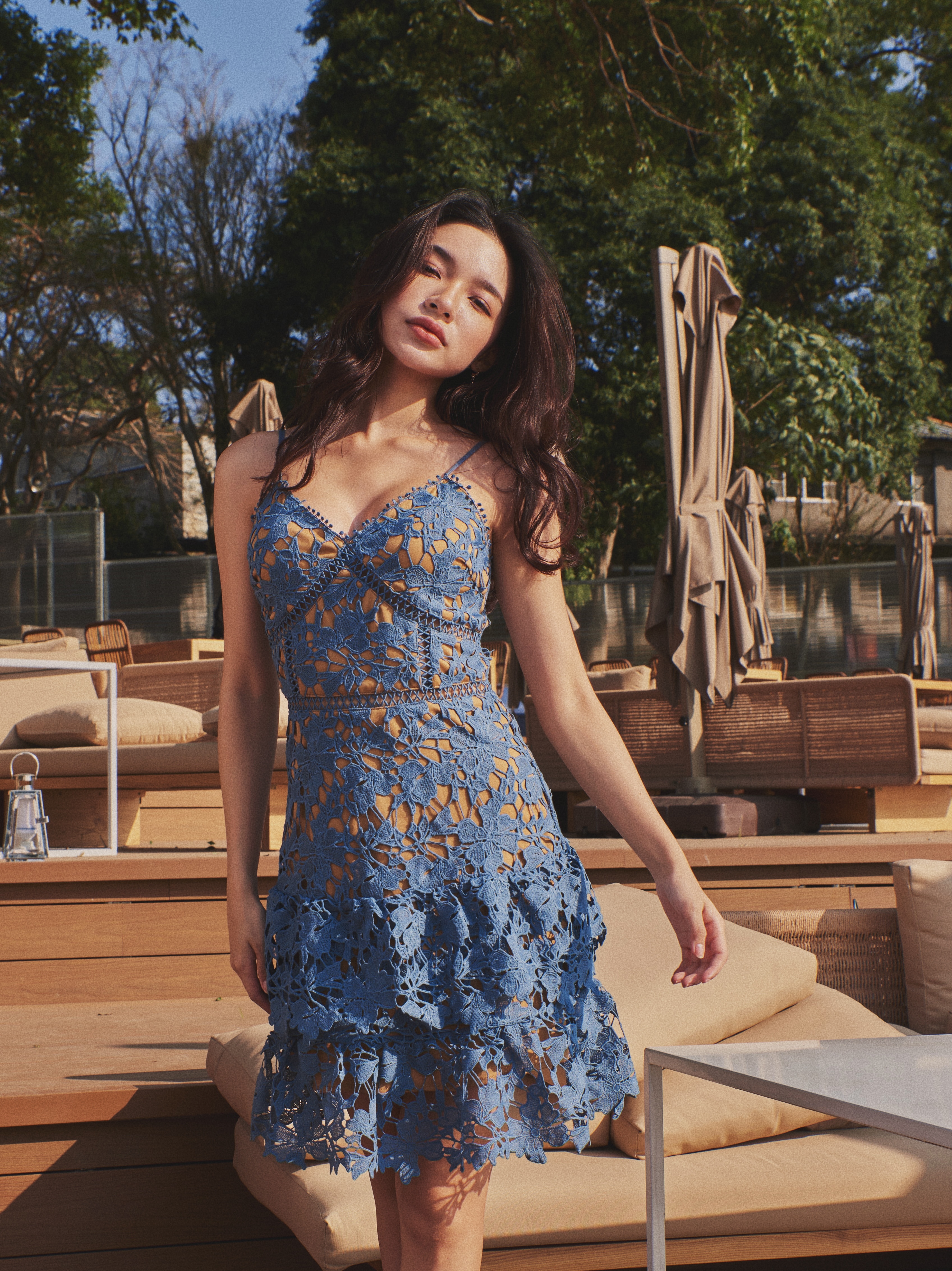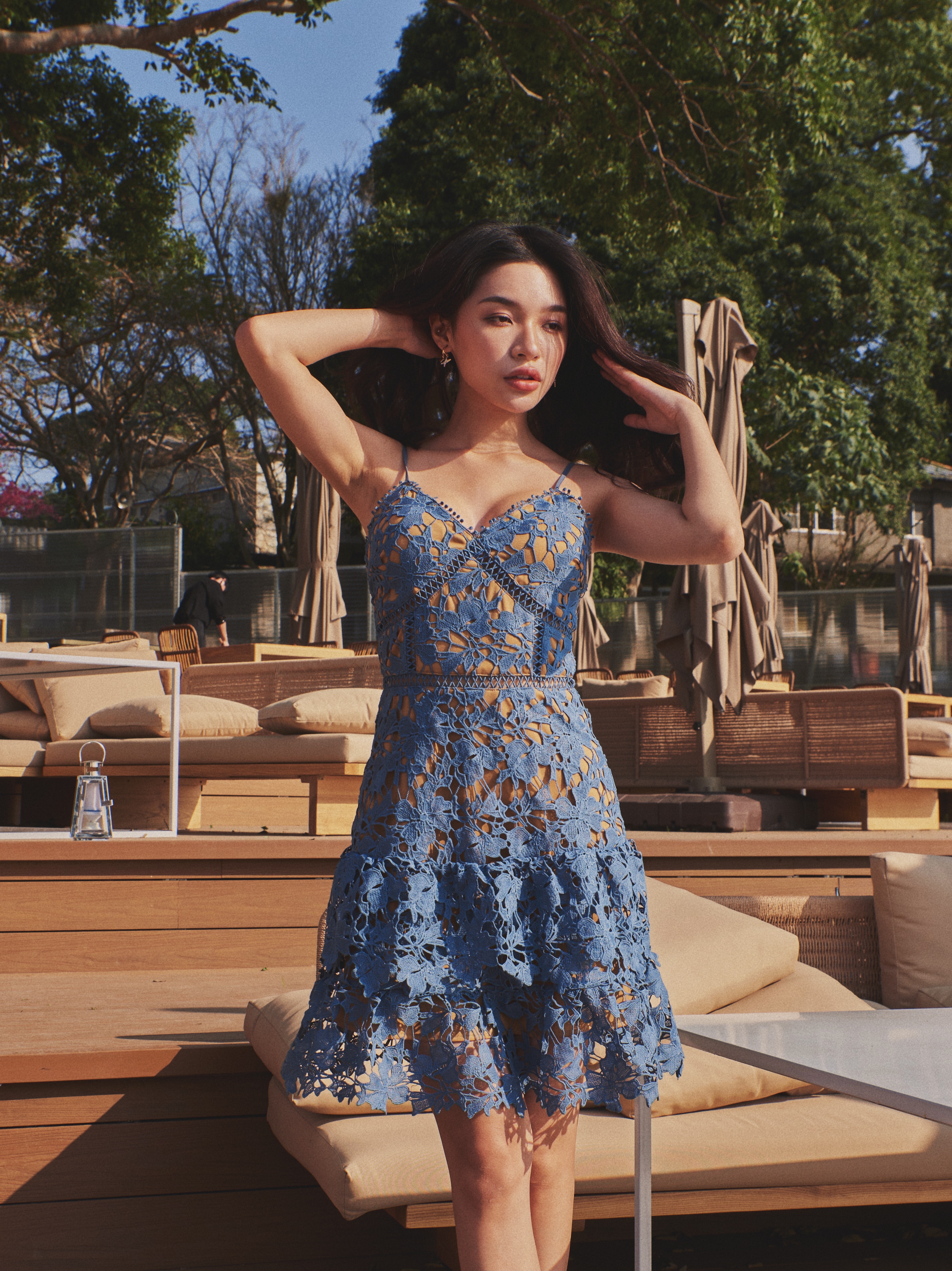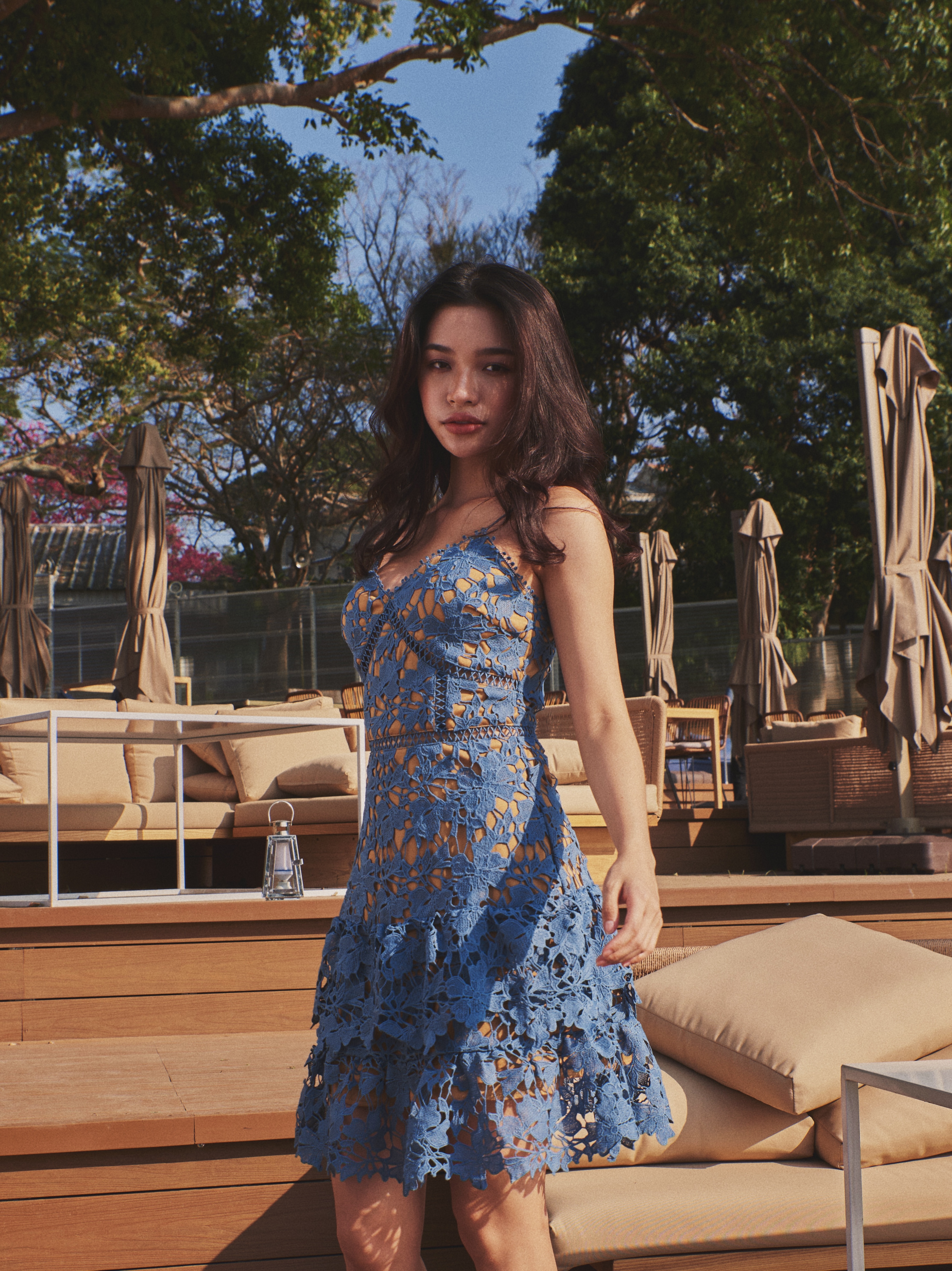 Like it 細肩帶雕花蕾絲小蛋糕裙