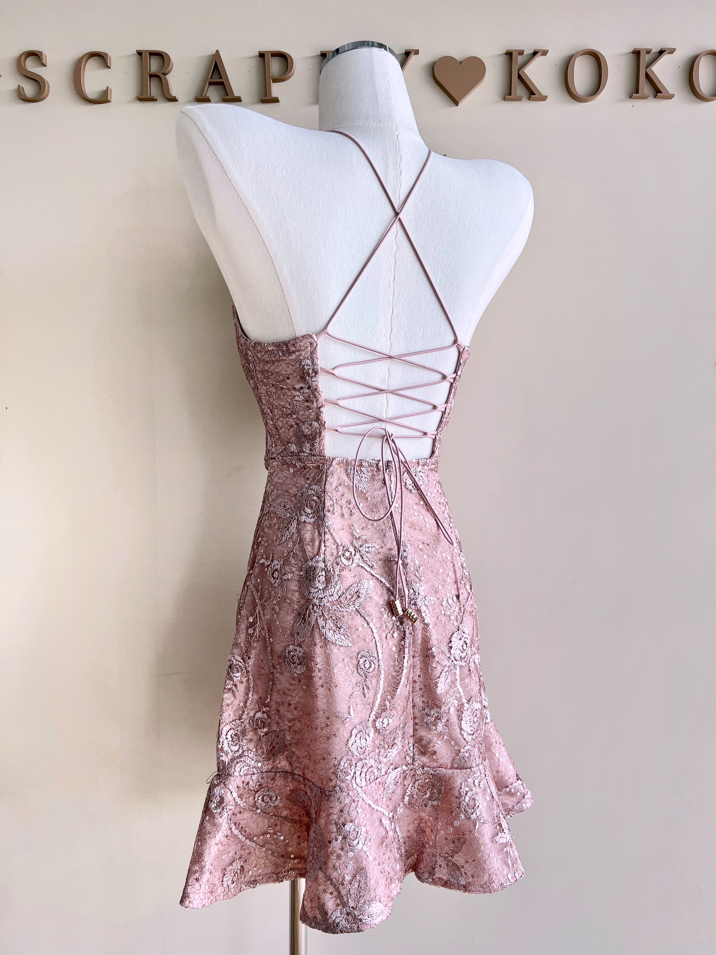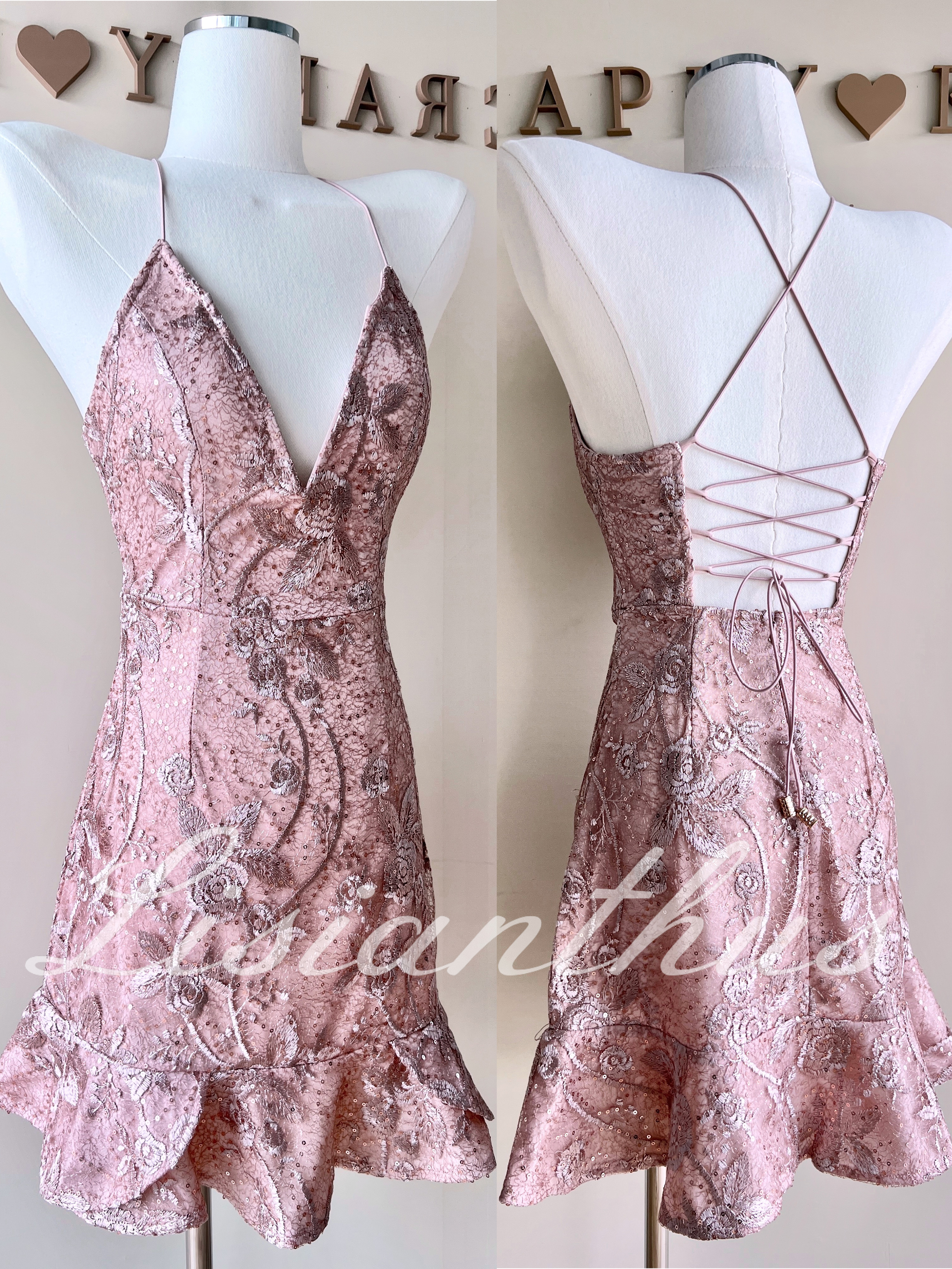 Lisianthus 洋桔梗 刺繡蕾絲魚骨短洋裝