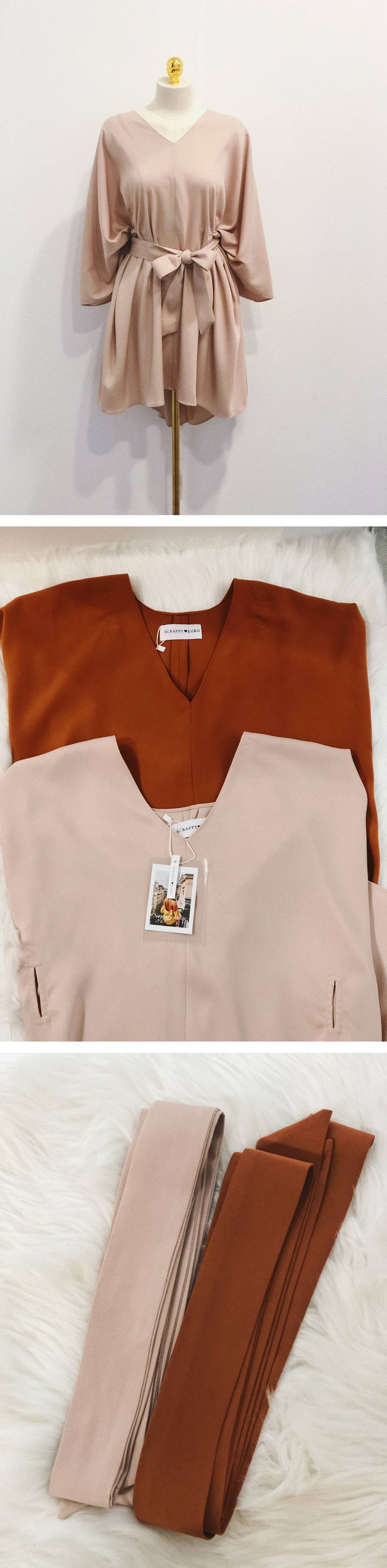 Misto 密斯朵 V領飛鼠袖洋裝(附腰帶)