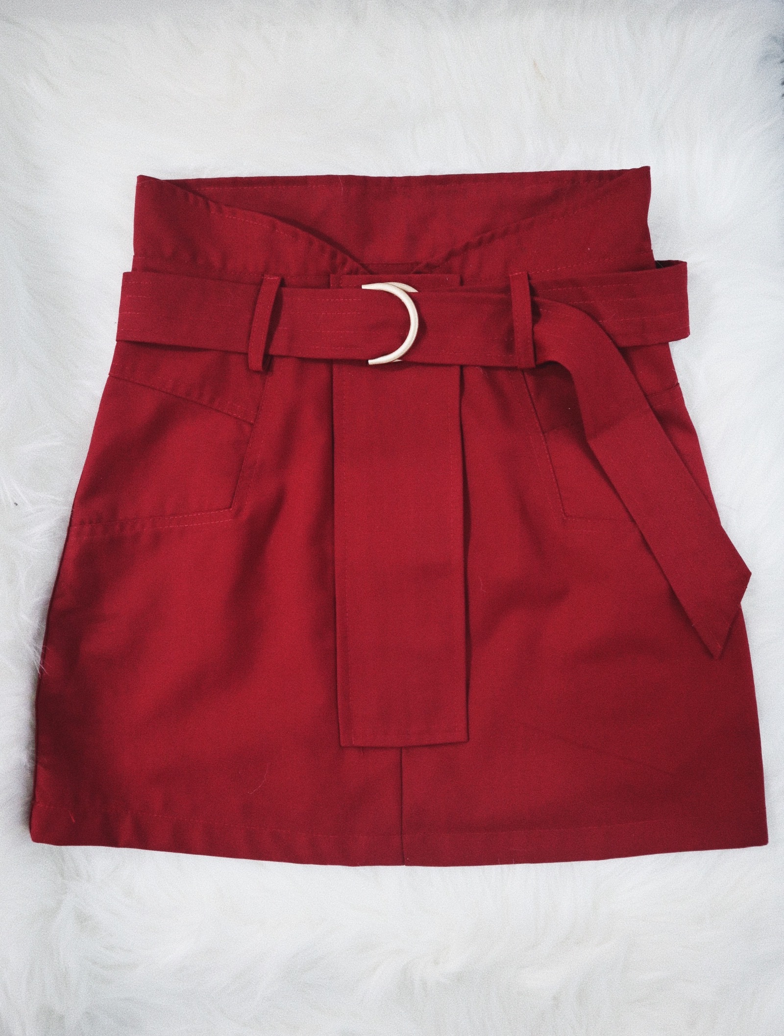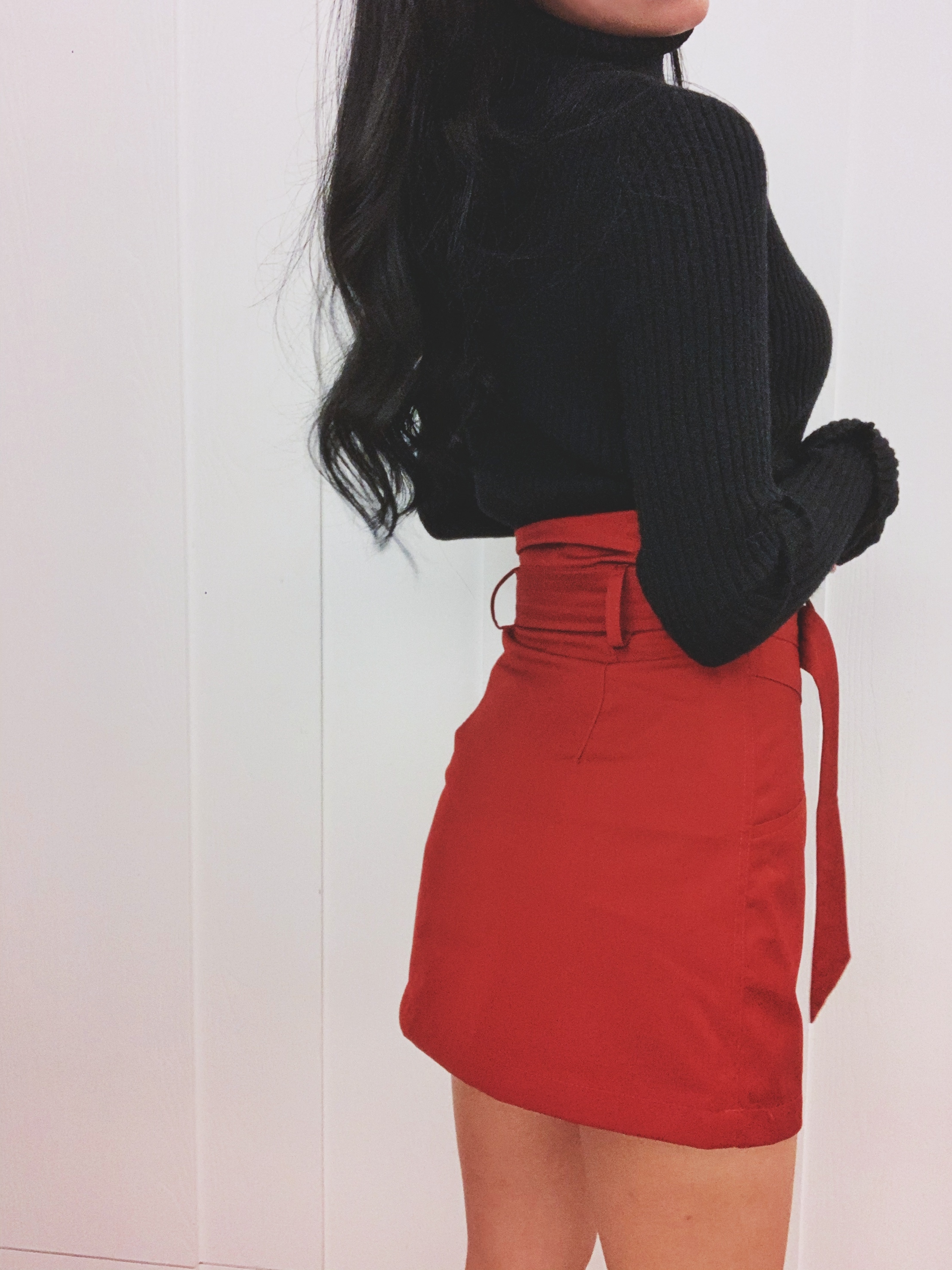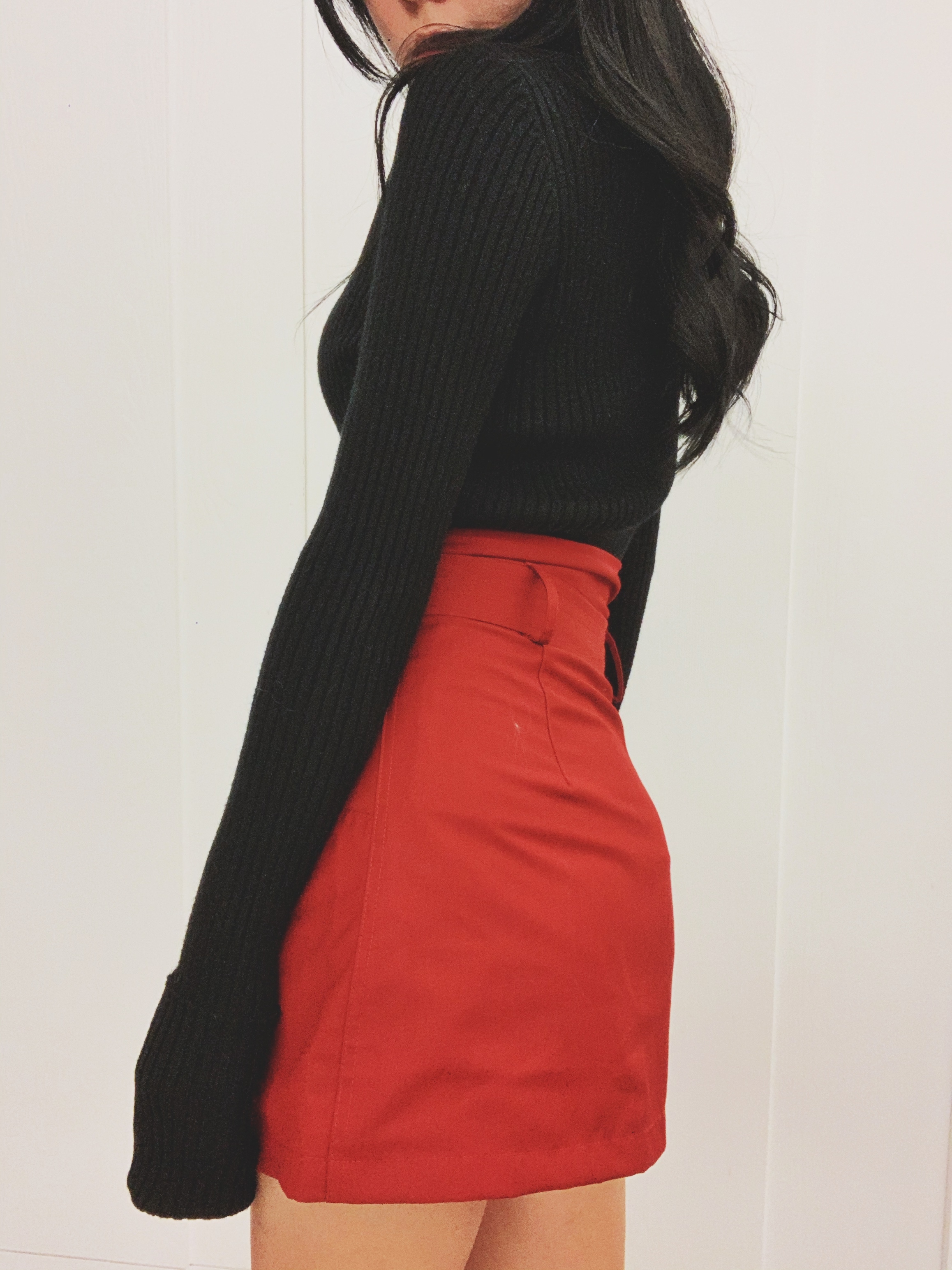 年前來個大紅色的百搭高腰短裙!斜紋棉布料很舒適