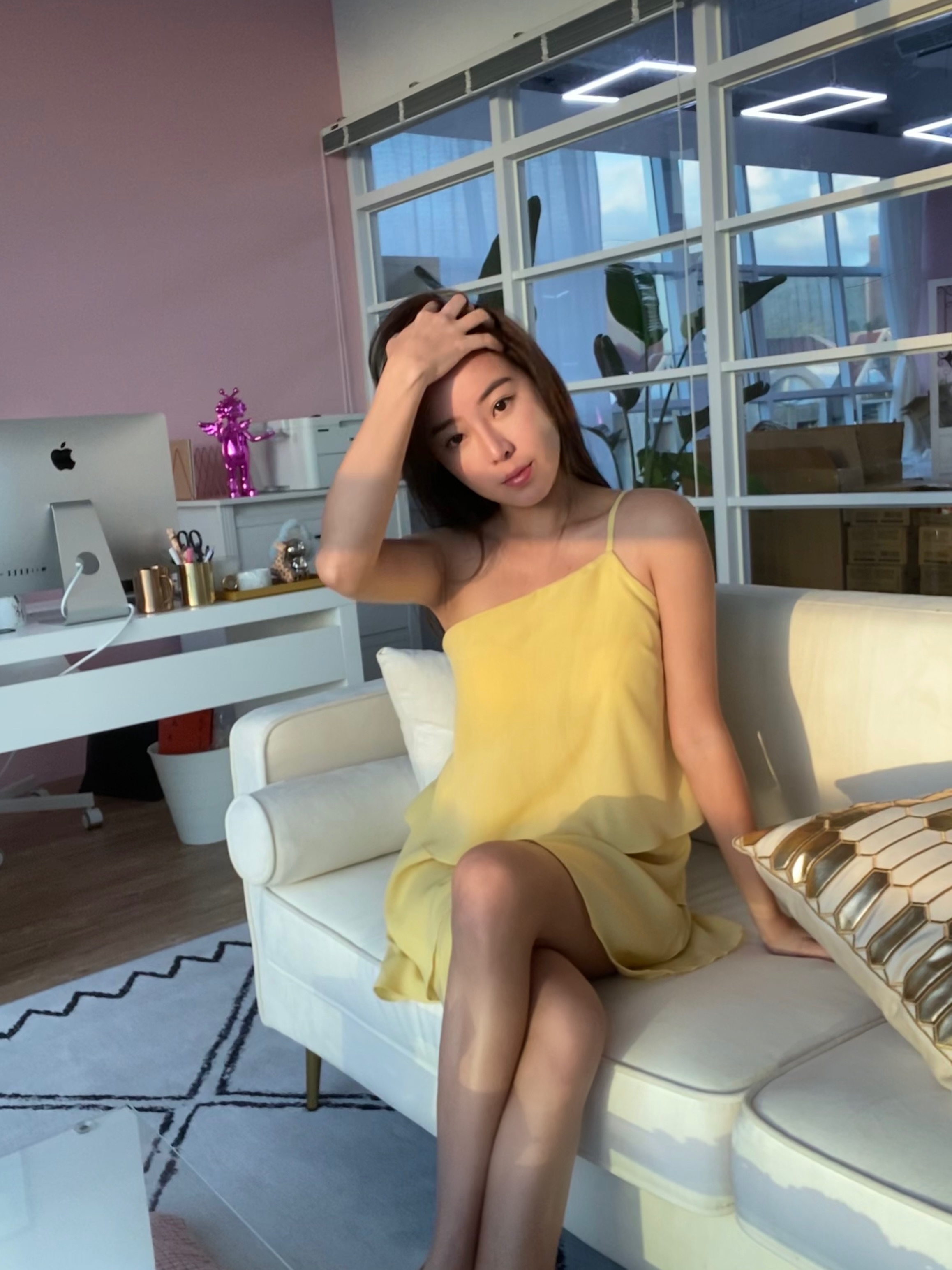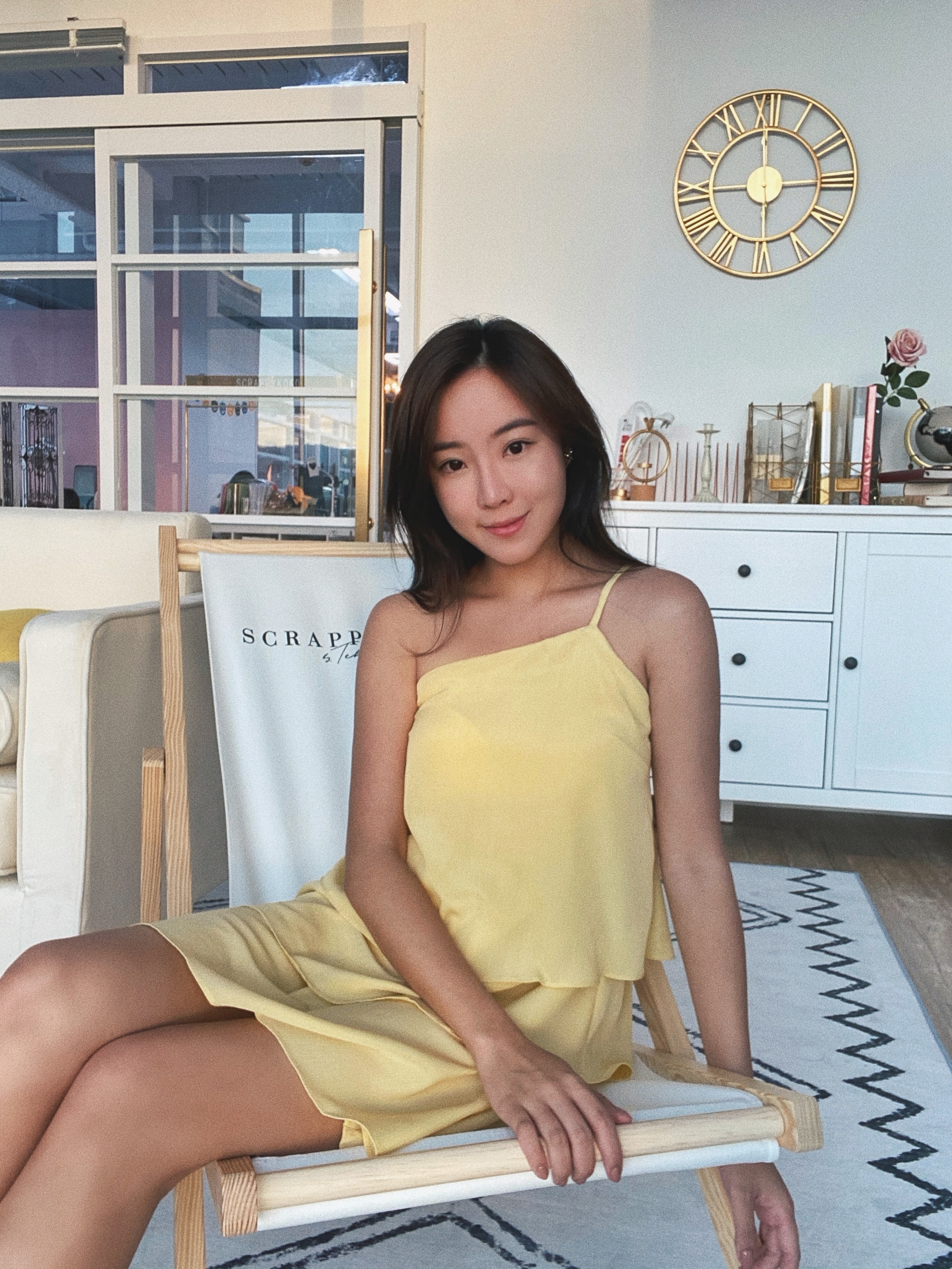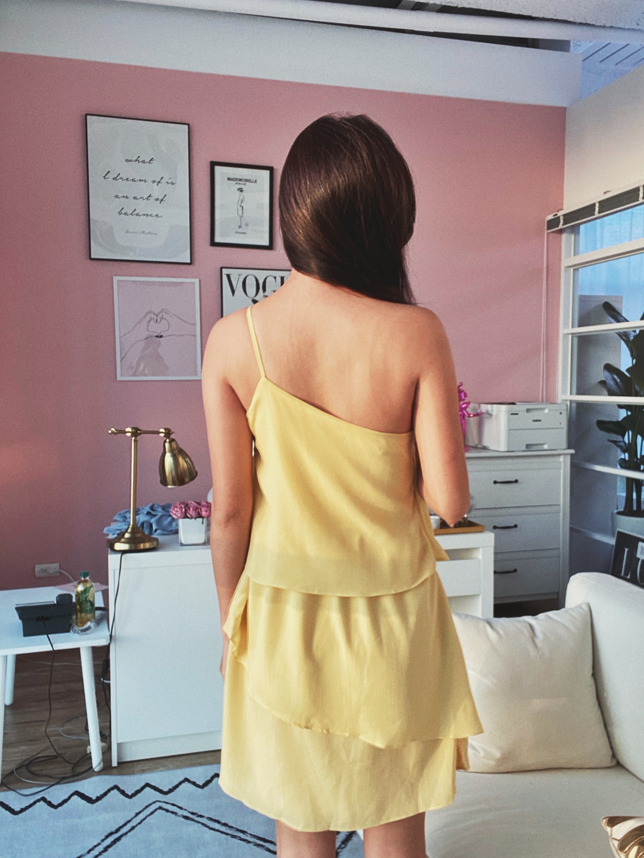 鵝黃色的斜肩小洋裝~光是鵝黃🐥這個顏色一聽到就覺得怎麼那麼可愛🥰