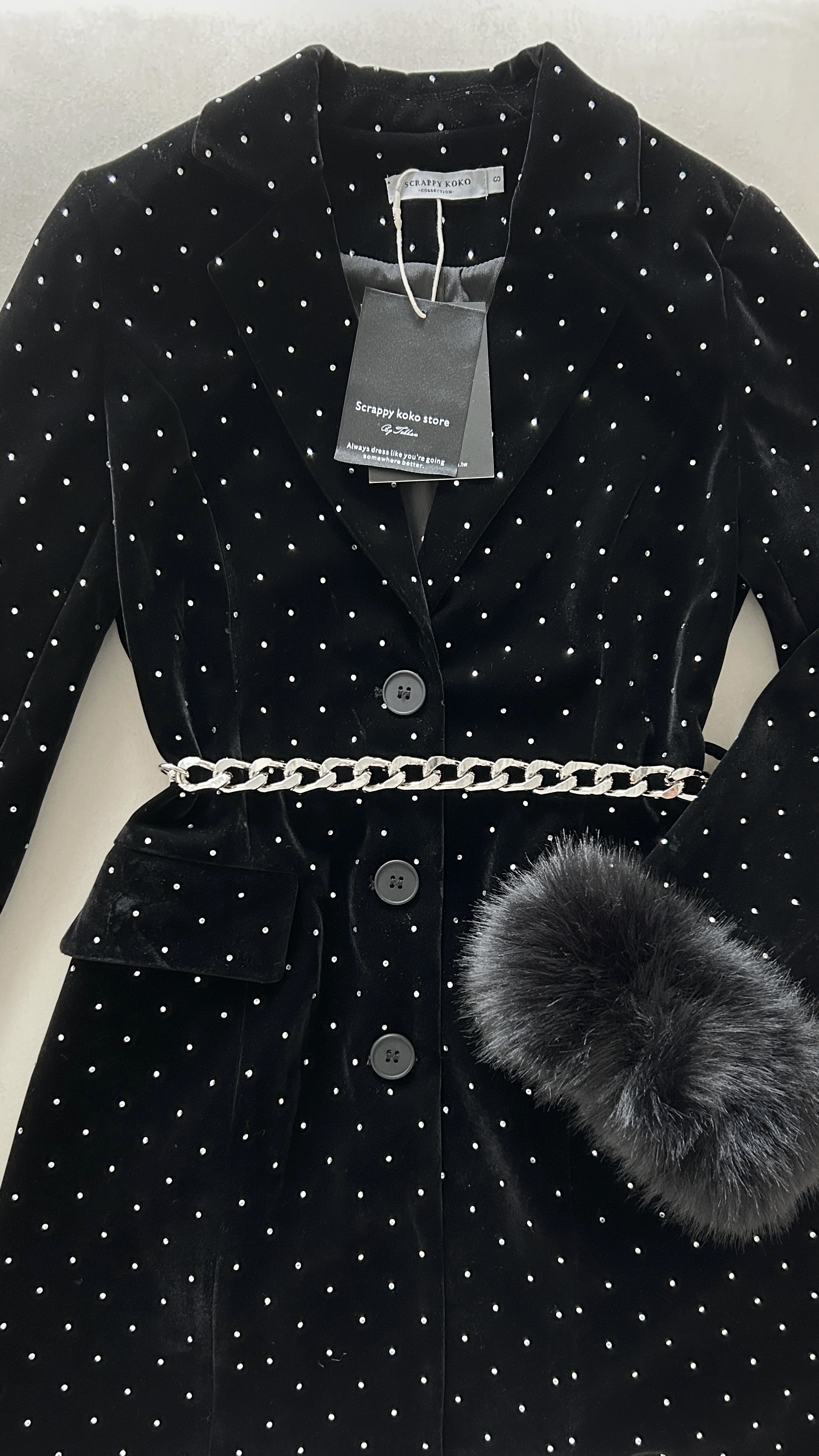 絨布面料加上滿滿的貼鑽超有質感