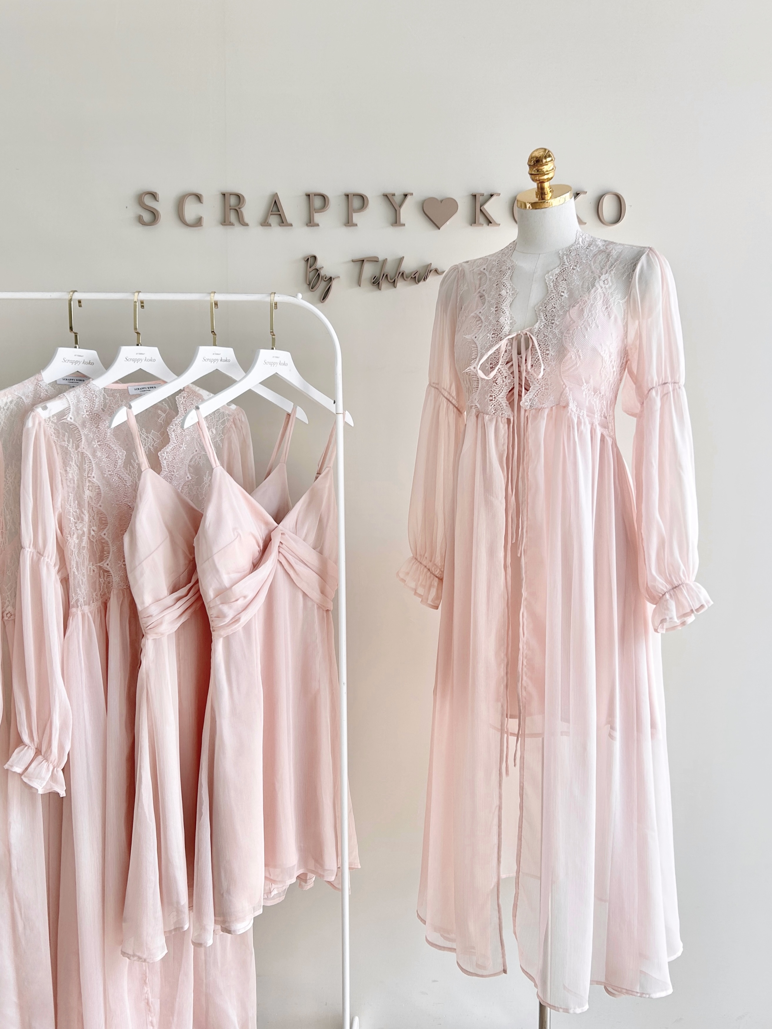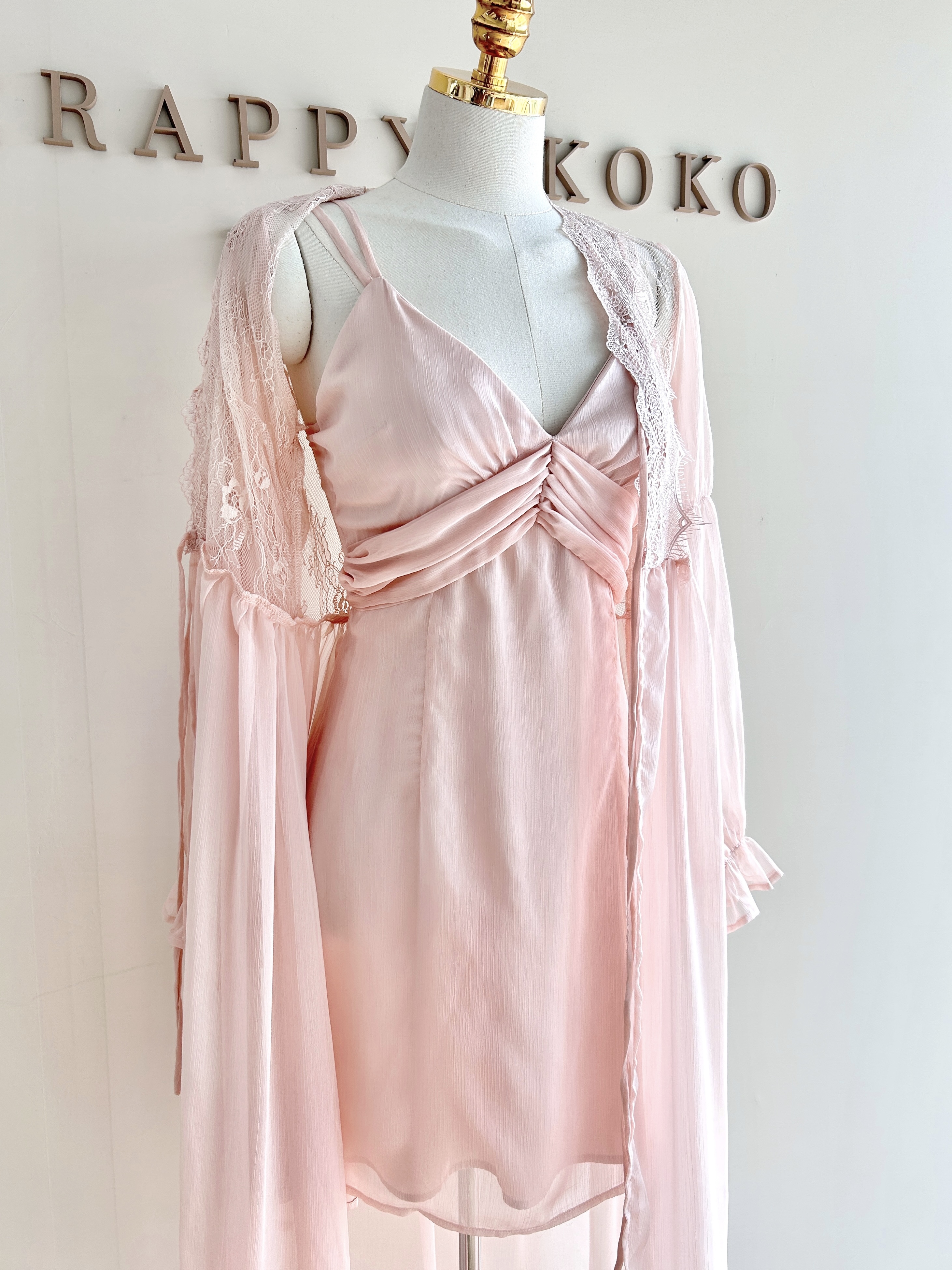 Rose angel 雙細肩帶短洋裝+透膚長罩衫