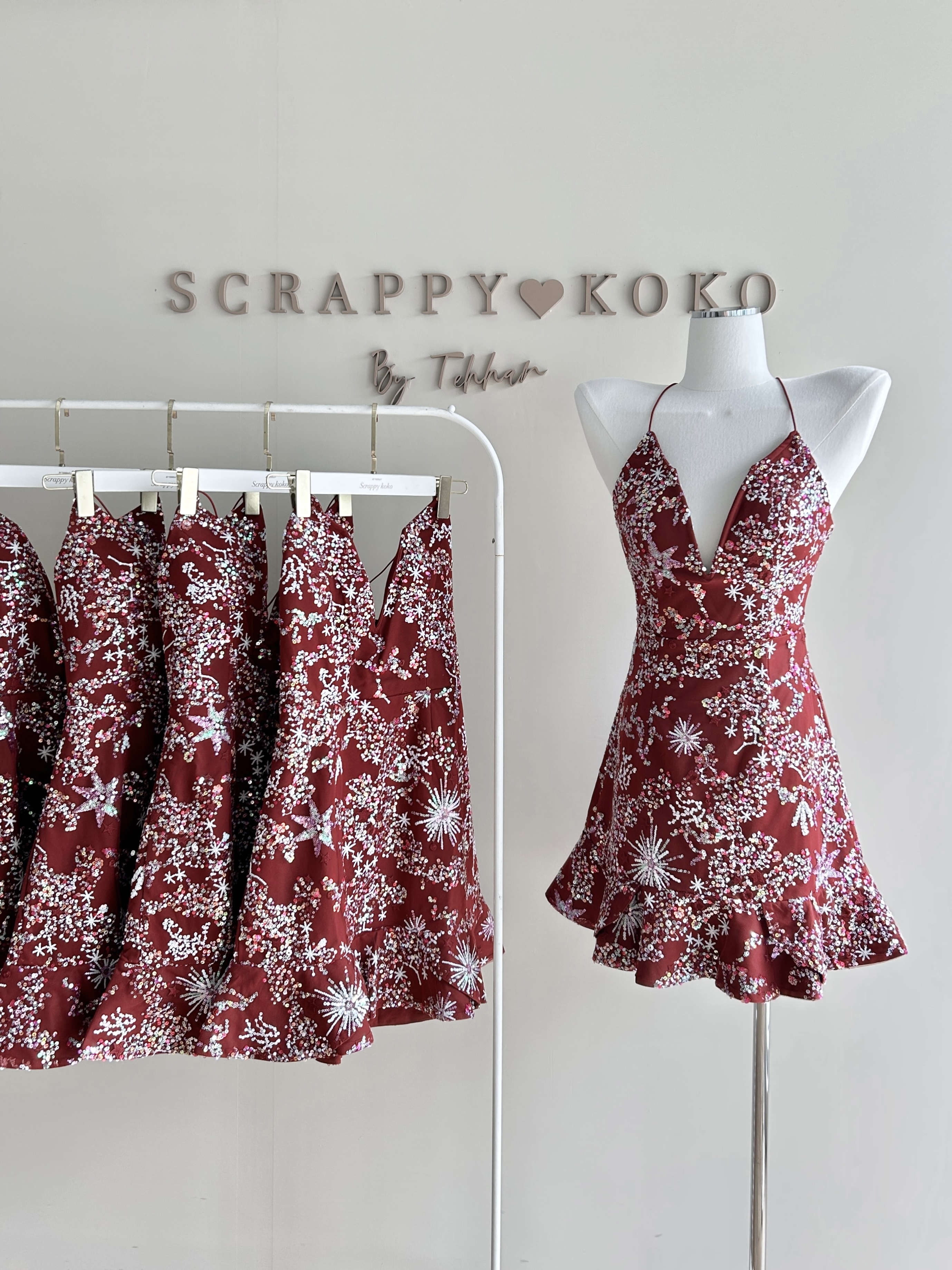 Spark 火花 亮片魚骨綁帶洋裝
