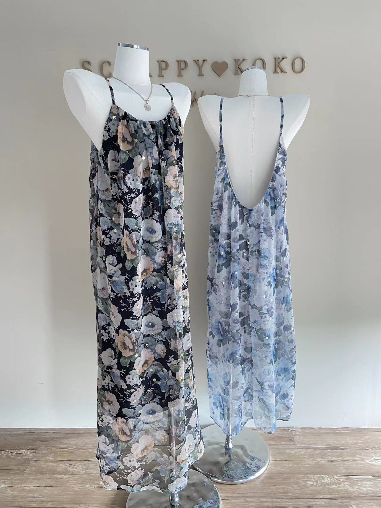 Starry night 星落繁花 細肩露背印花長洋裝