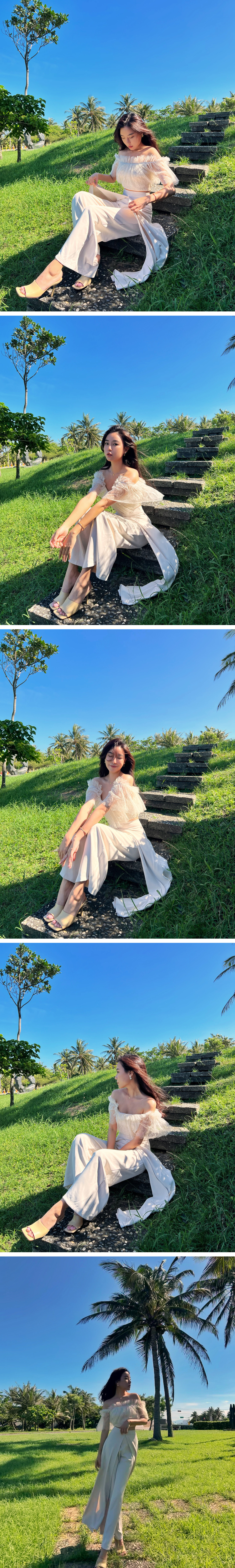 休閒的雪紡褲搭配蕾絲