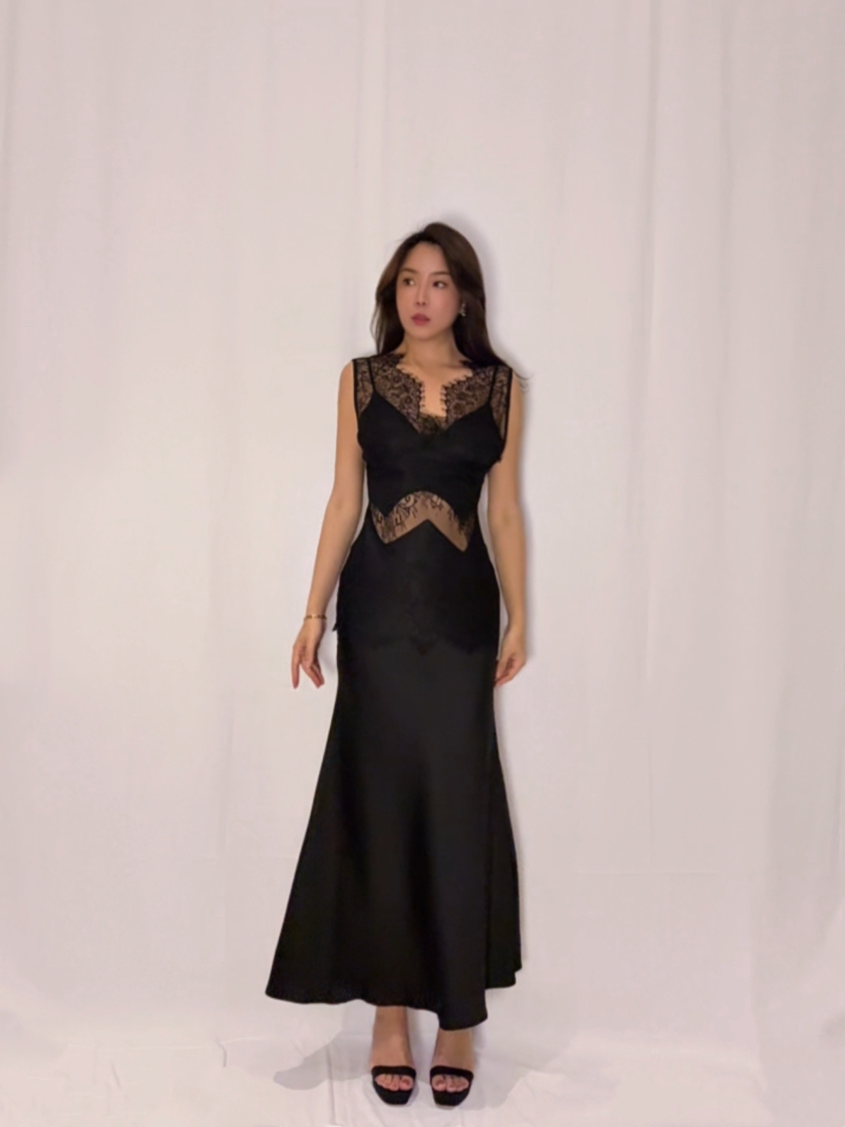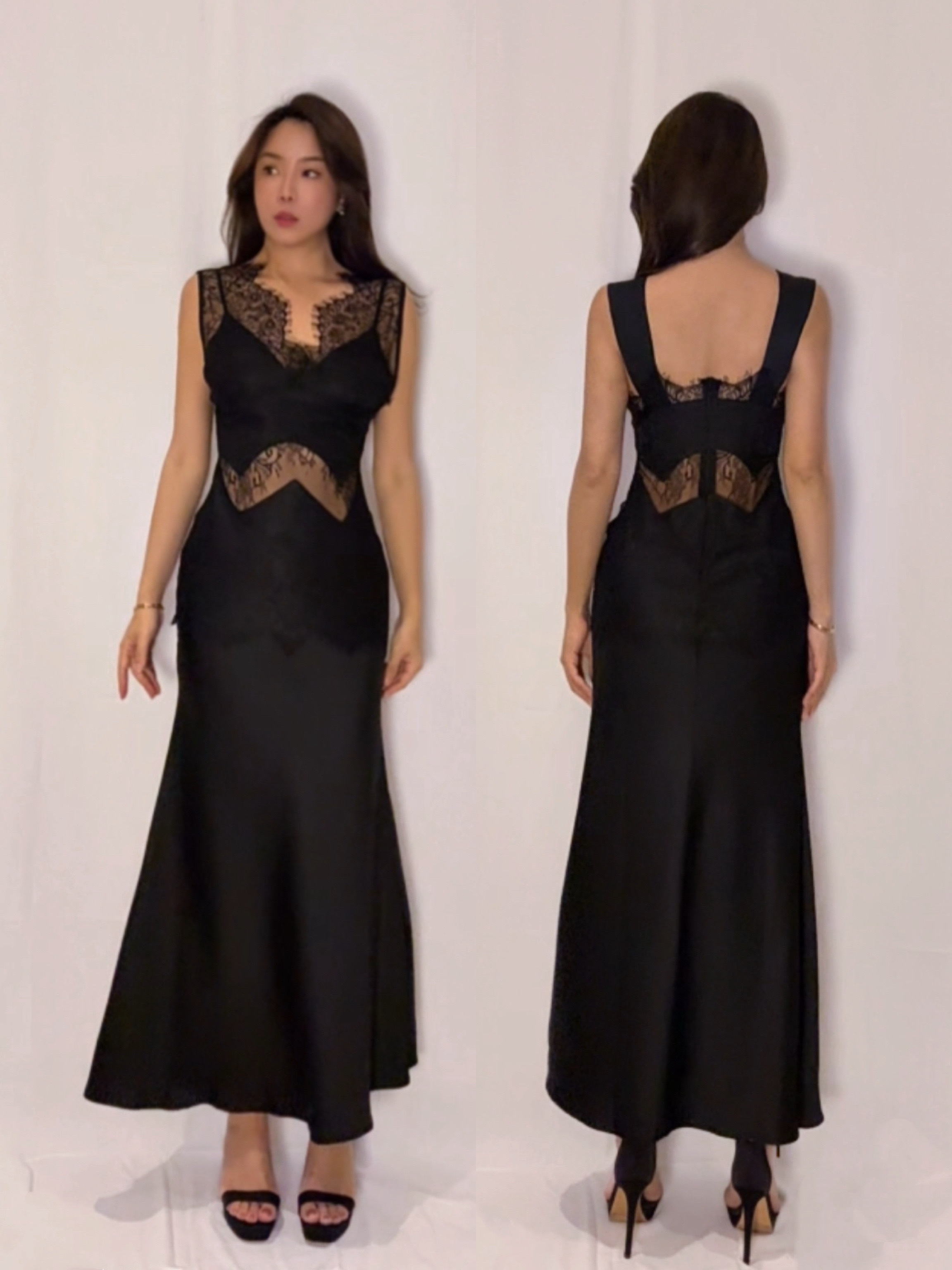 下擺魚尾剪裁修身又優雅,還能順便遮肉肉😆