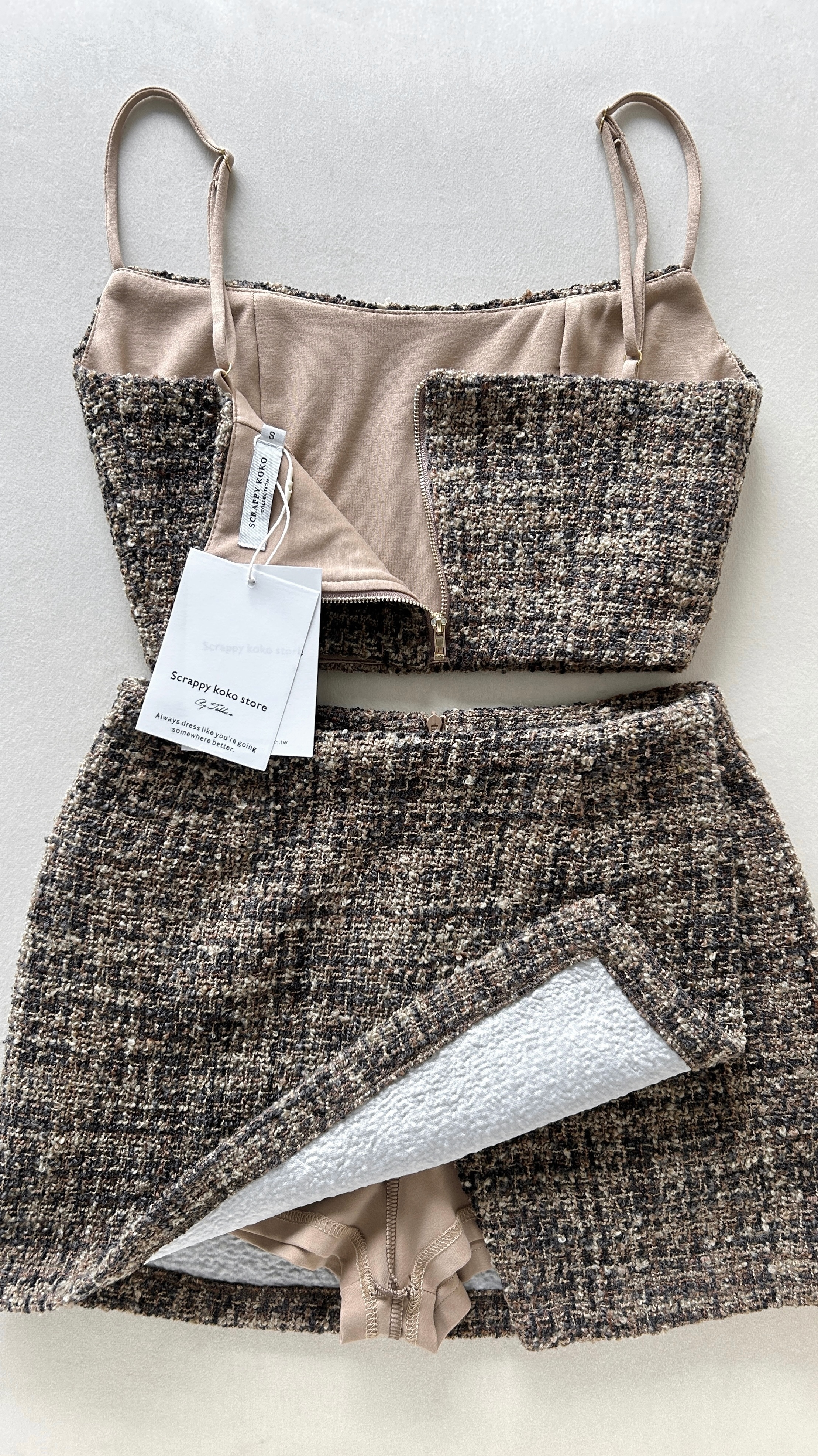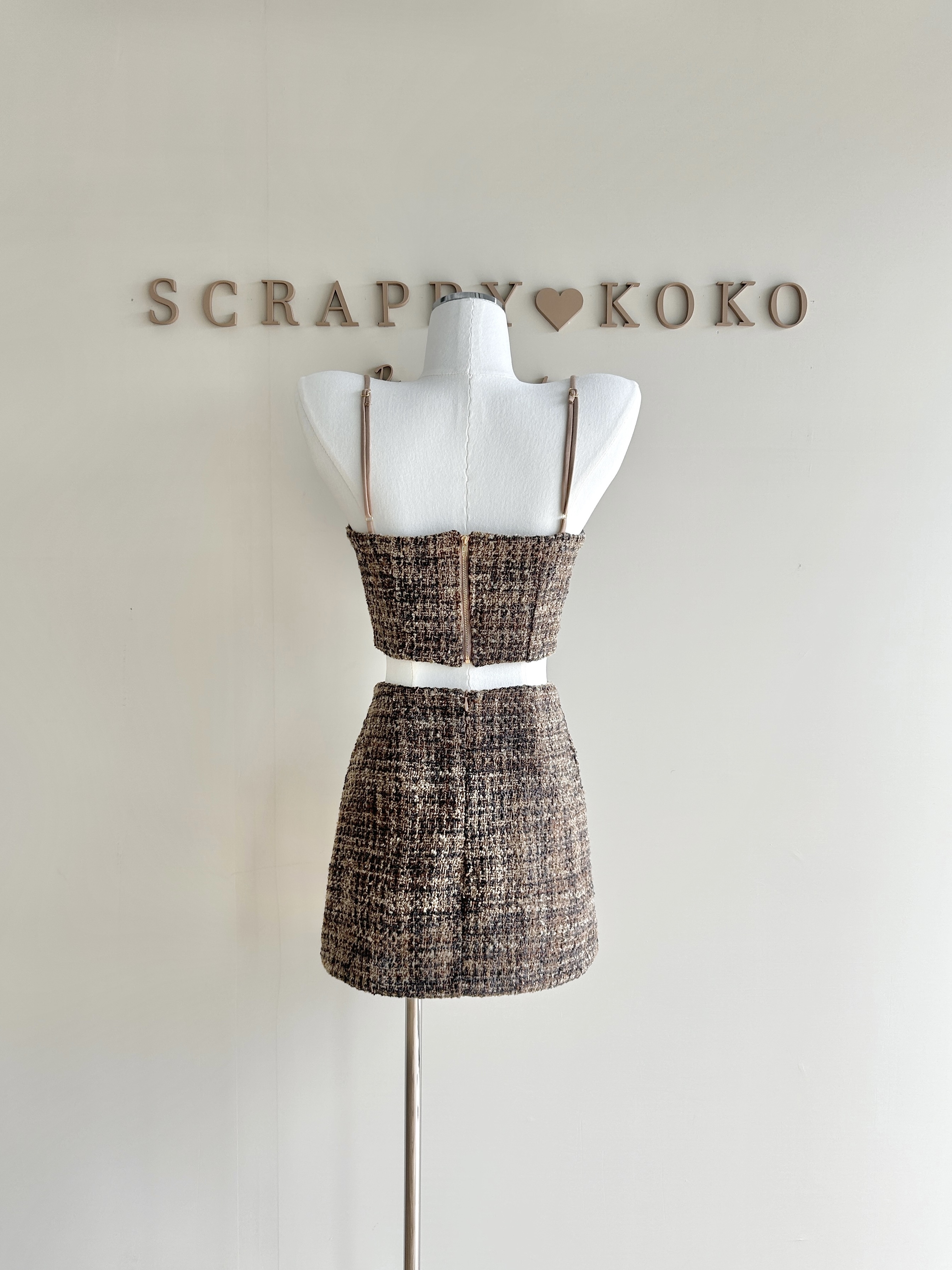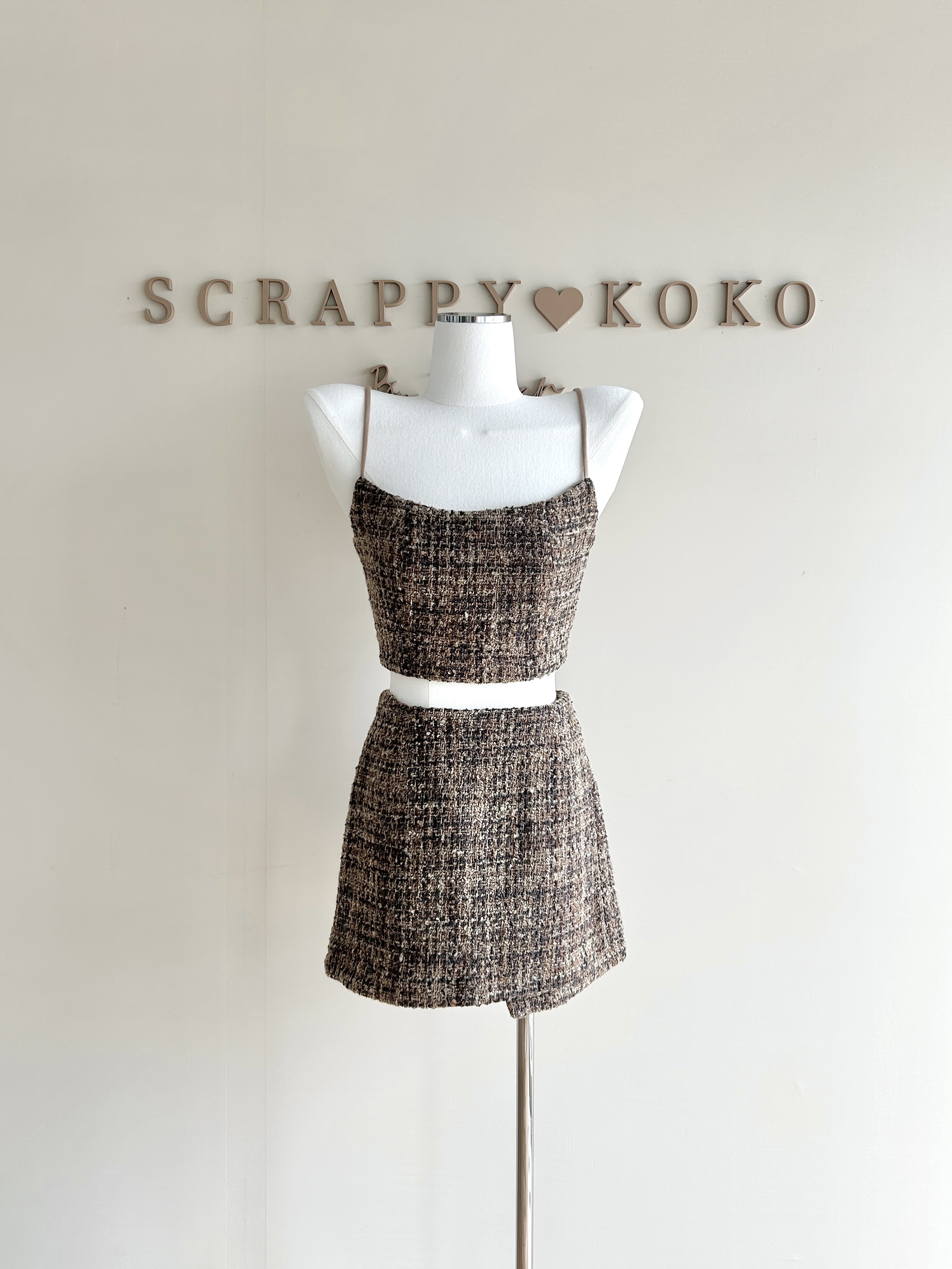 Teddy 毛呢細肩帶背心+短裙