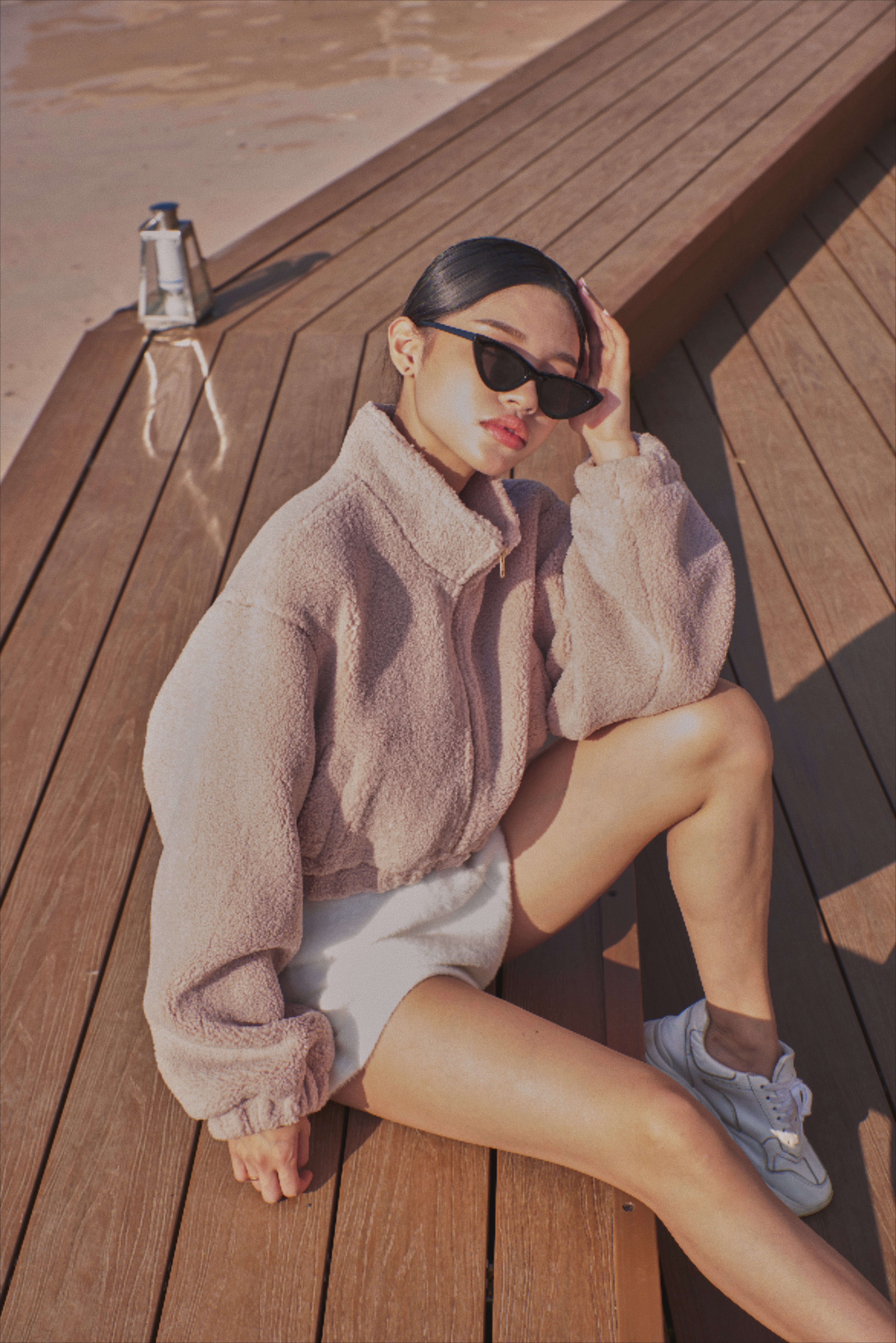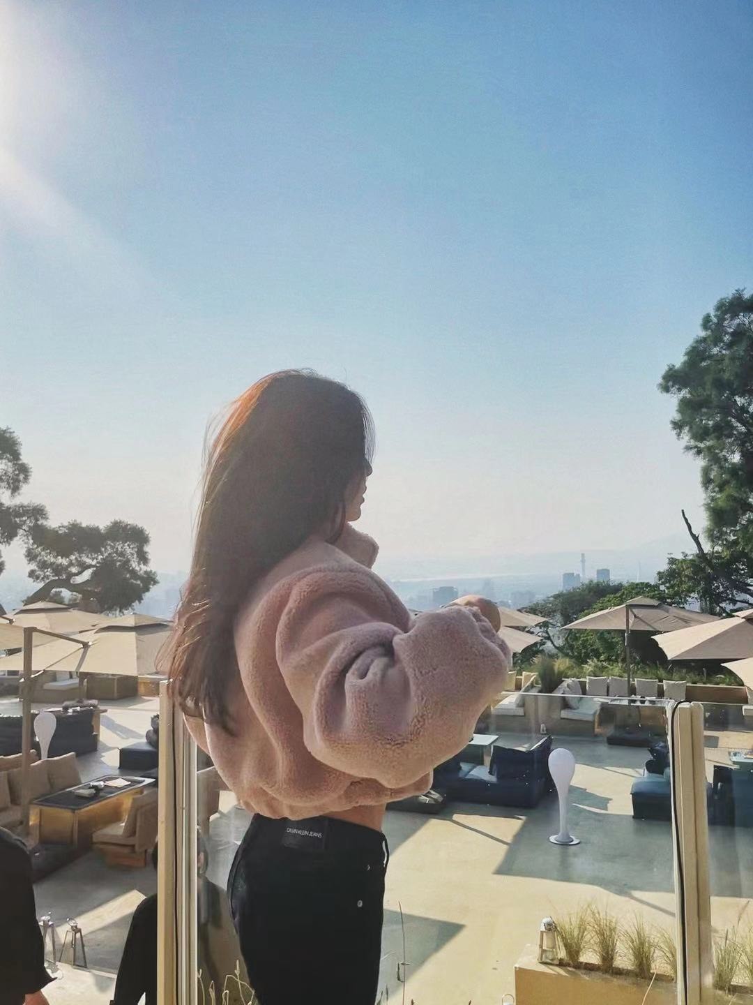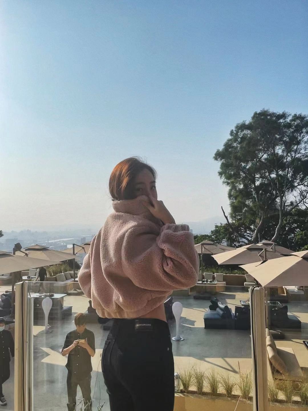 版型有點像飛行夾克那種酷酷的樣子但因為顏色是選擇霧霧玫瑰粉~就會可愛很多😍😍