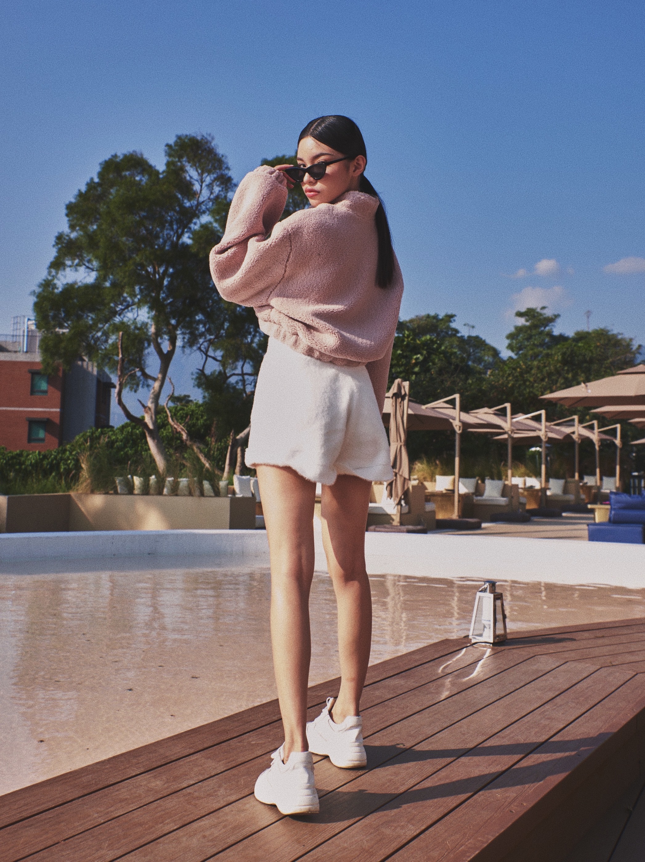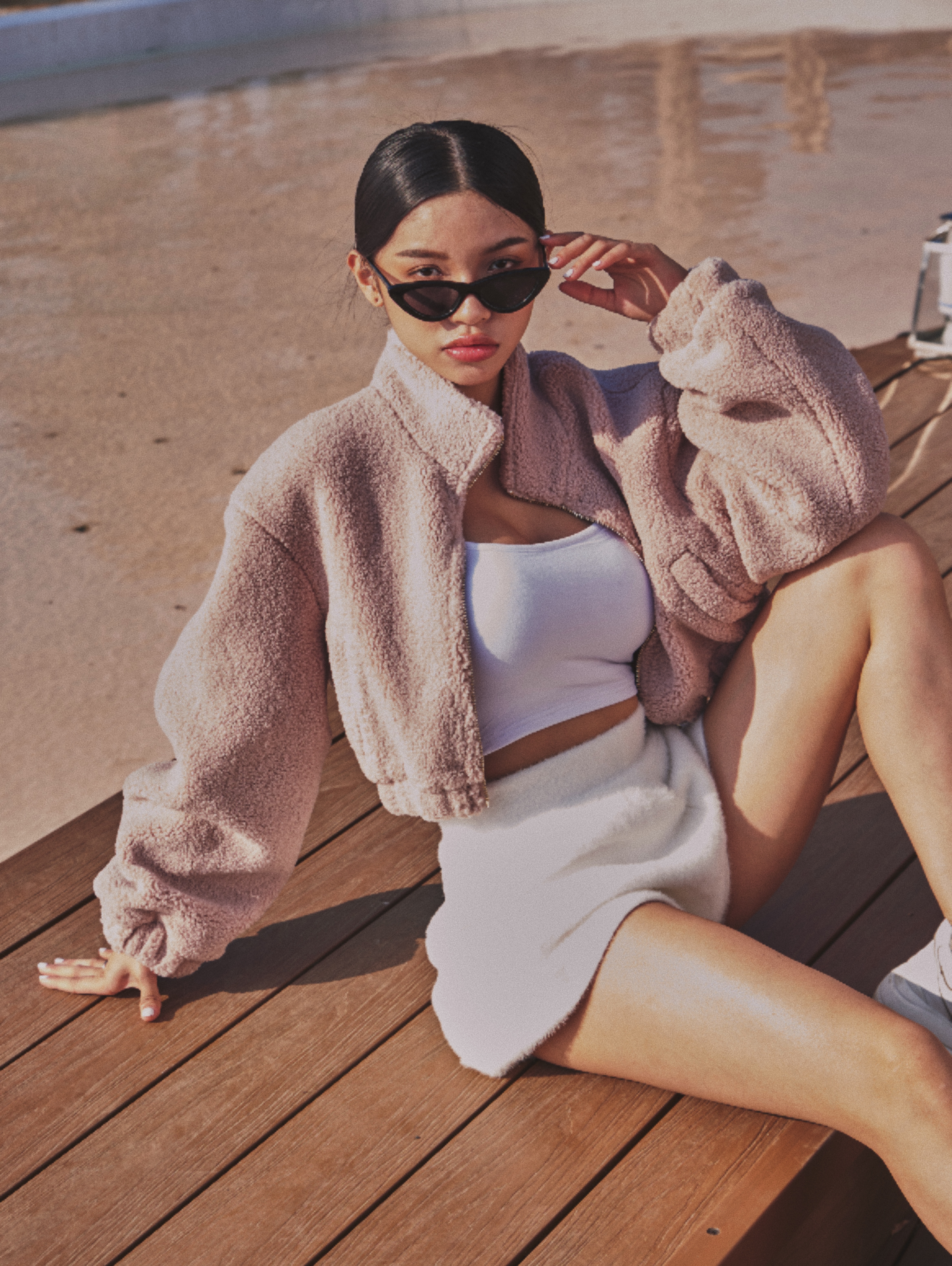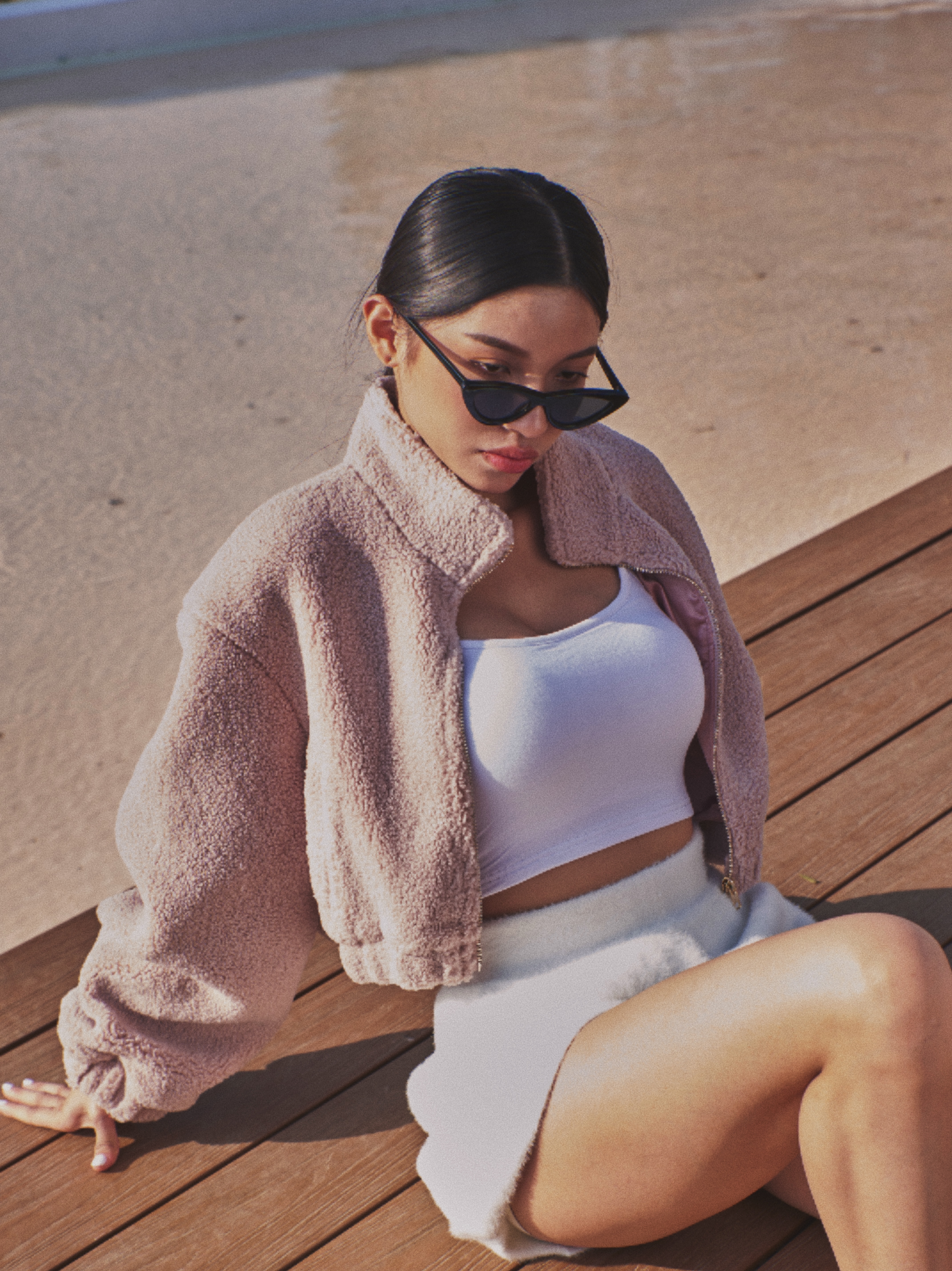 版型有點像飛行夾克那種酷酷的樣子但因為顏色是選擇霧霧玫瑰粉~就會可愛很多😍😍