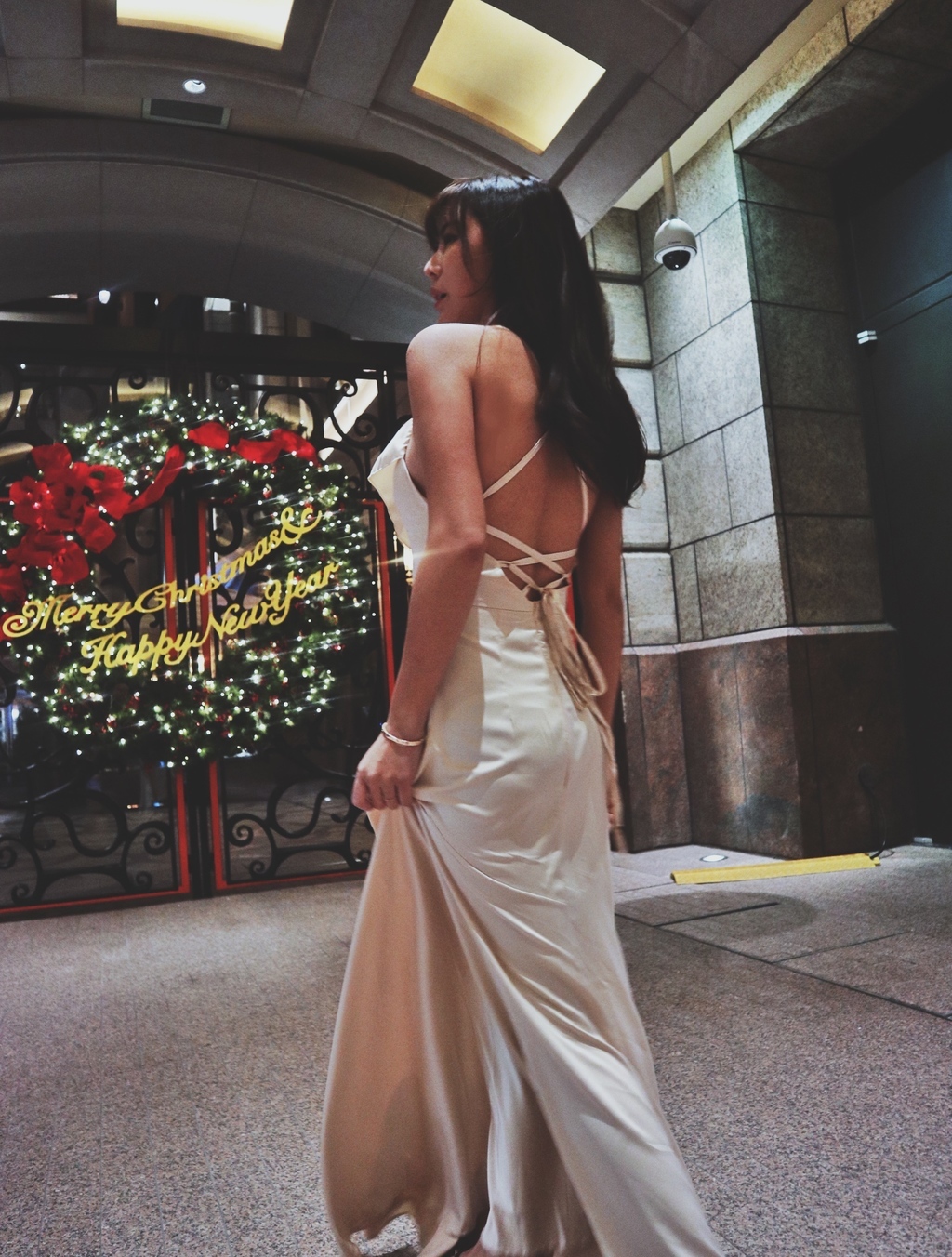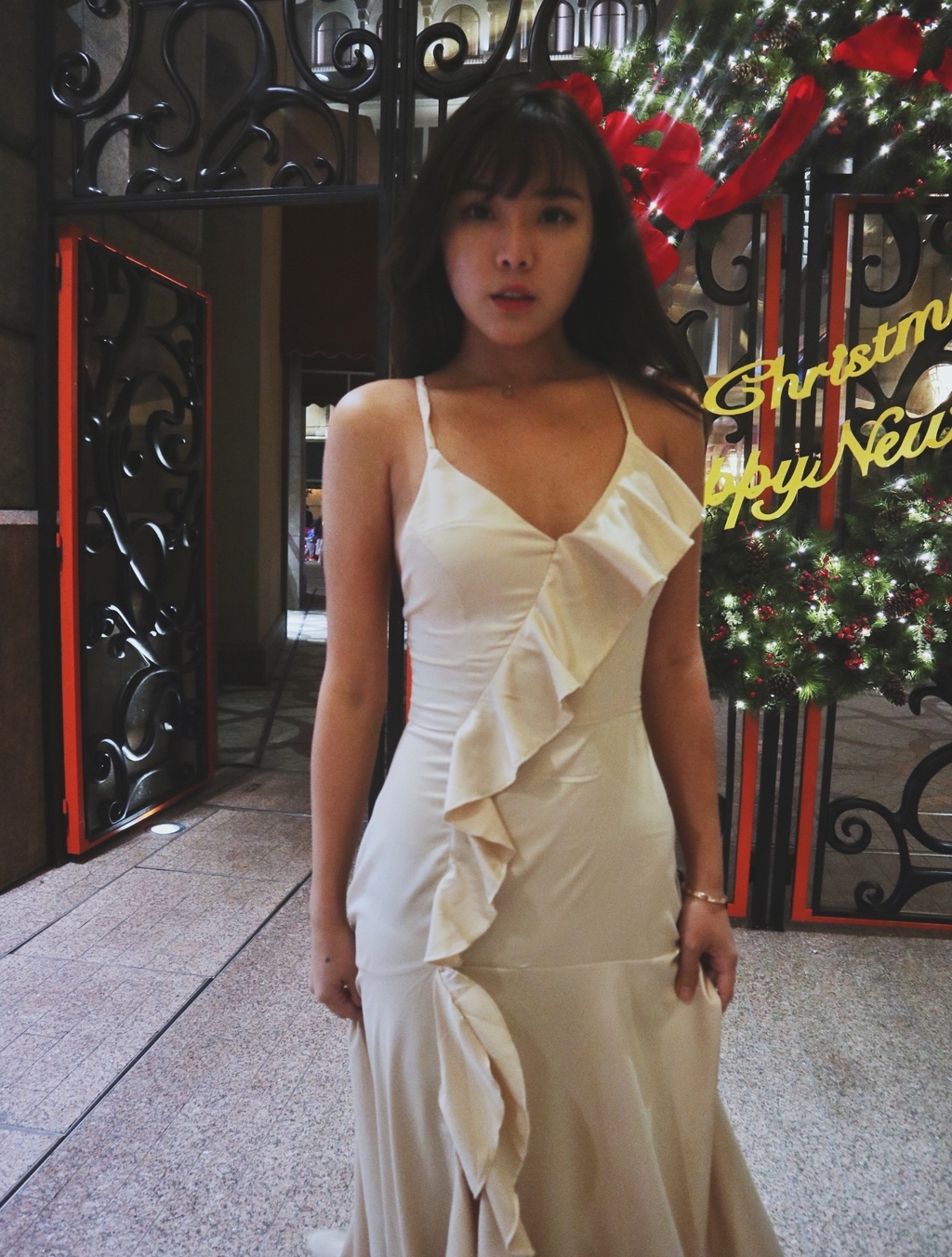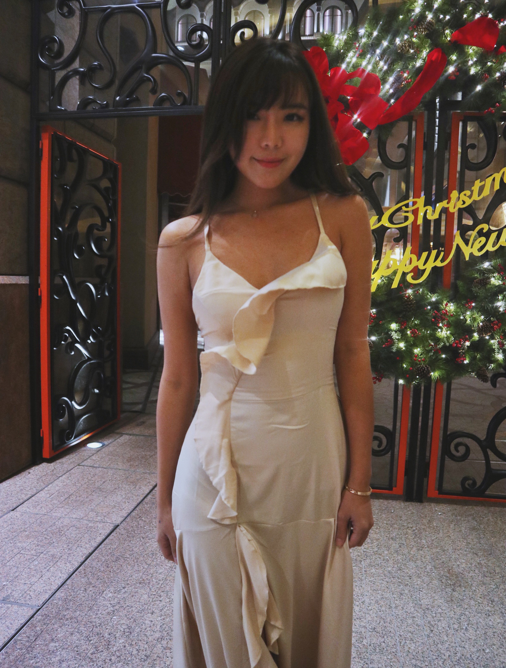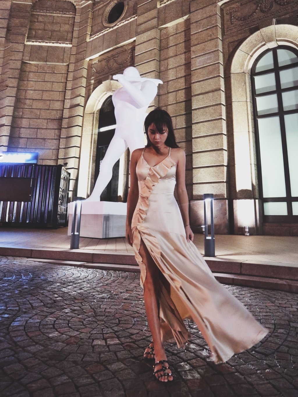 Wish me luck 幸運兒 香檳絲滑緞大開衩長洋裝