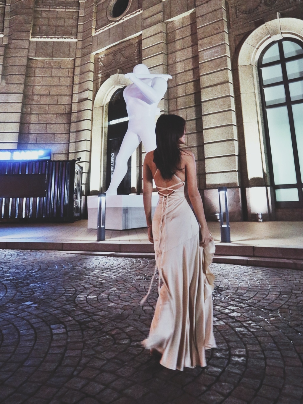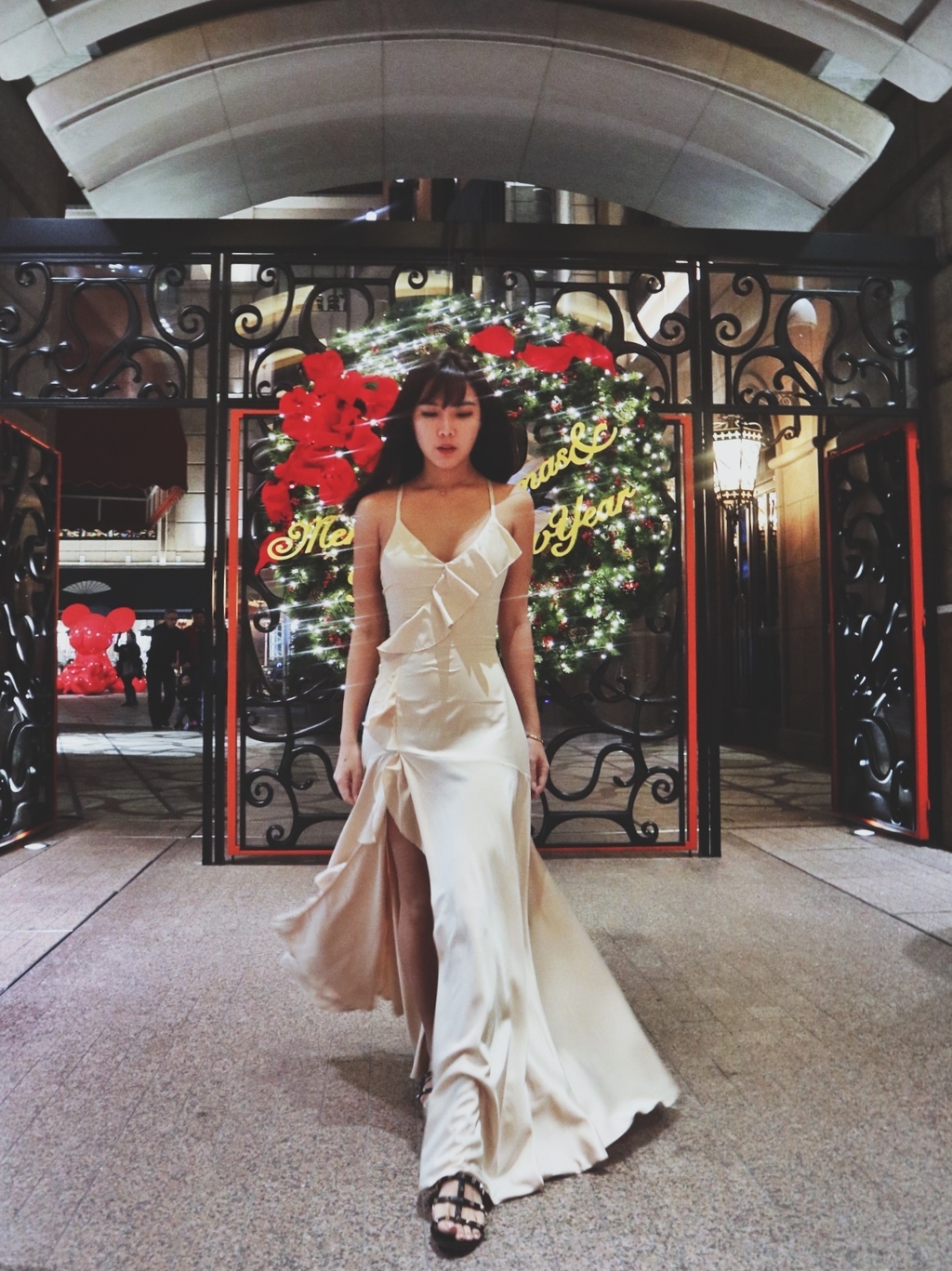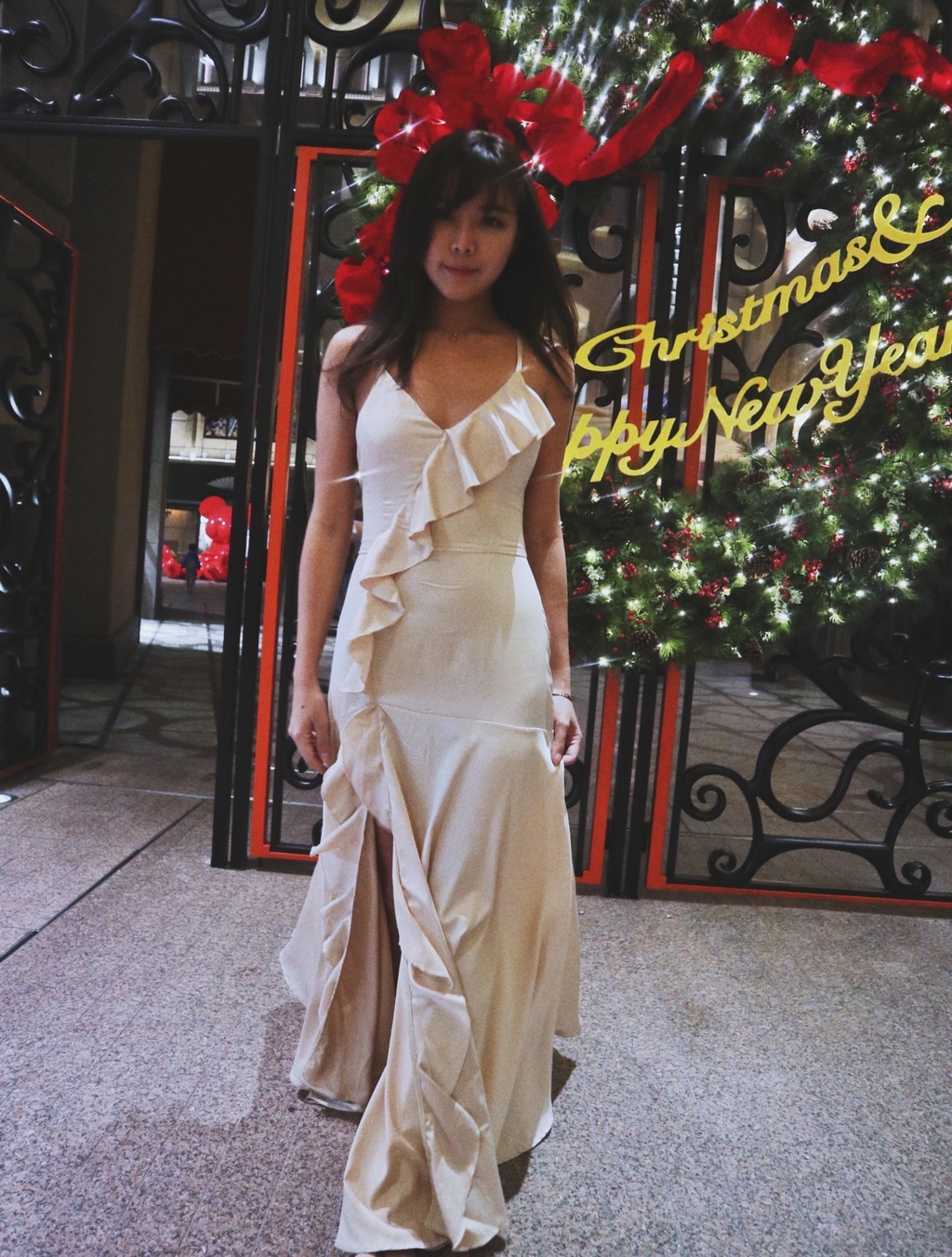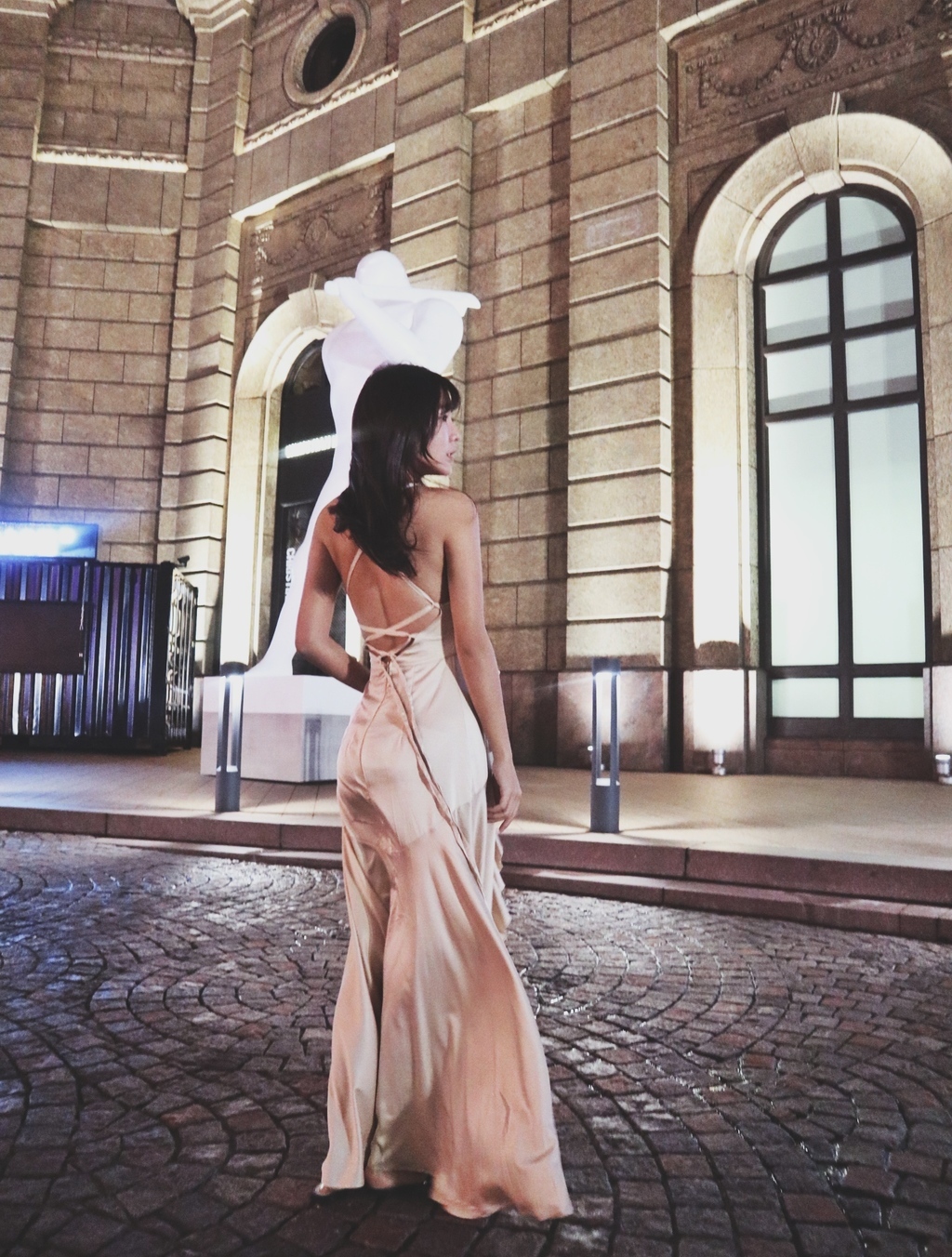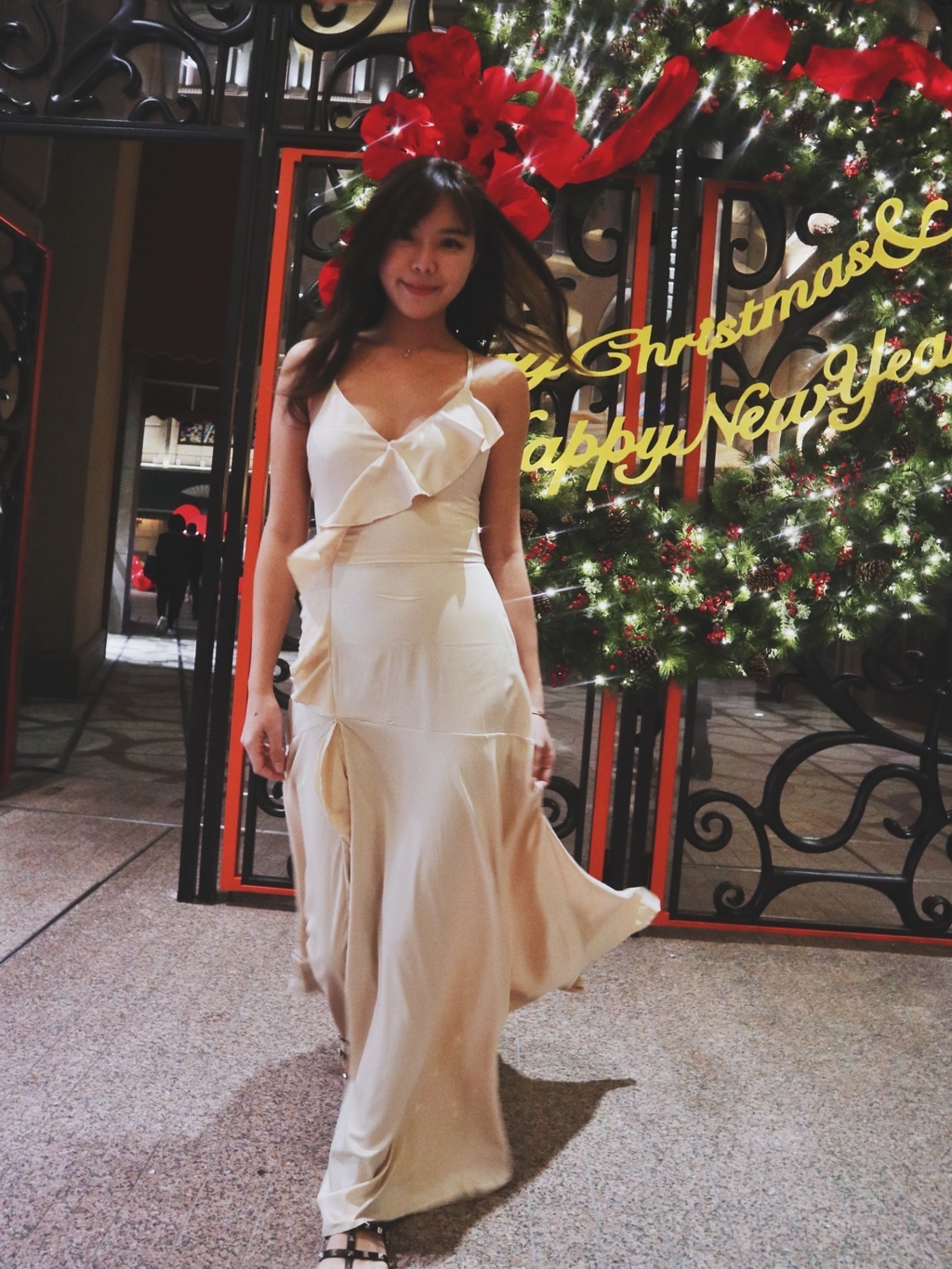 Wish me luck 幸運兒 香檳絲滑緞大開衩長洋裝